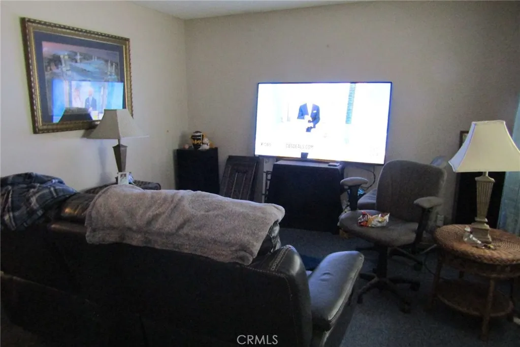 Cozy 2 bedroom house with large living room. One bedroom has patio doors to covered patio and large fenced back yard. Kitchen has dining area, with a galley type food prep area and countertops, built-in dishwasher, and microwave. Kitchen also has laundry, and door into attached garage. Bathroom has shower over tub. Newer carpet in living room and 2 bedrooms. Additional storage structure is attached to garage and covered rear patio. Back yard is large with flat useable space, surrounded by wood privacy fence. The attached garage shares a common wall with the next-door garage, as is common in this 55+ development.