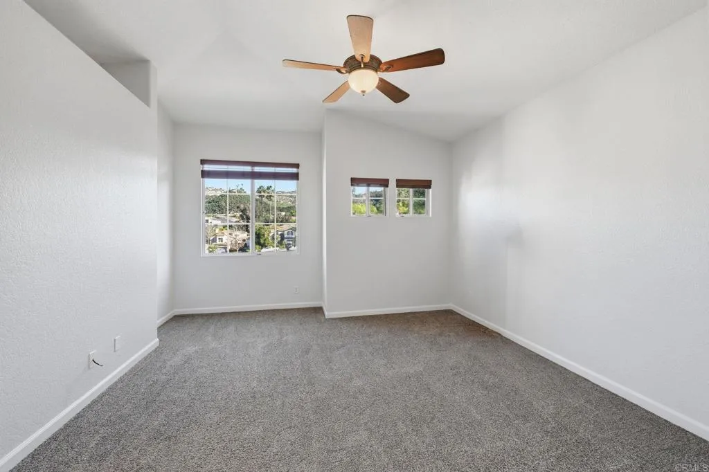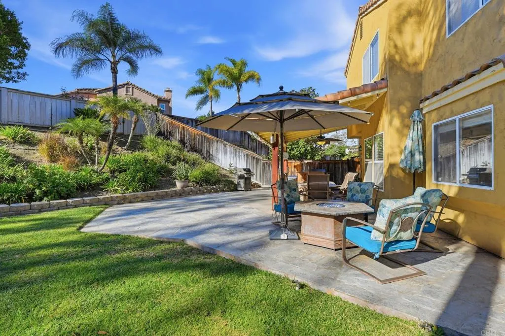 Welcome to the hidden gem community of Kent Ranch in north Escondido! This charming home is nestled in a peaceful cul-de-sac with scenic mountain views. Step inside the freshly painted home and find a nice formal living room with beautiful mountain views, adjacent to a stylish dining room. Cook up a gourmet meal in the spacious kitchen, featuring granite countertops and upgraded stainless steel appliances that seamlessly connect to the dinette and family room, which overlooks the backyard. Cozy up in the family room with the relaxing gas fireplace, enhanced by porcelain tile floors, and a ceiling fan on those warmer days. Downstairs is an upgraded guest bathroom, an indoor laundry, some cabinets, and direct garage access. Venture up the wide stairs into the primary suite with window views of the mountains. There is a walk-in closet, an en-suite bathroom with dual sinks, a soothing bathtub with views, and a shower. There are three more bedrooms at the top level that share a full bathroom with dual sinks. The expansive backyard is perfect for entertaining, offering a large grassy area for play and space for a potential pool. Enjoy the covered patio with concrete and flagstone, and a ceiling fan while having a BBQ. The Kent Ranch Community features a private park with picnic spots, a playground, and BBQ areas. Experience the friendly atmosphere of this peaceful community with nearby walking trails, golf, vibrant downtown Escondido, the Center for the Arts, lakes, and a variety of school options, including public, private, and charter schools. This home is ready for a family to