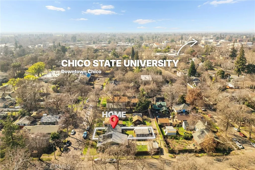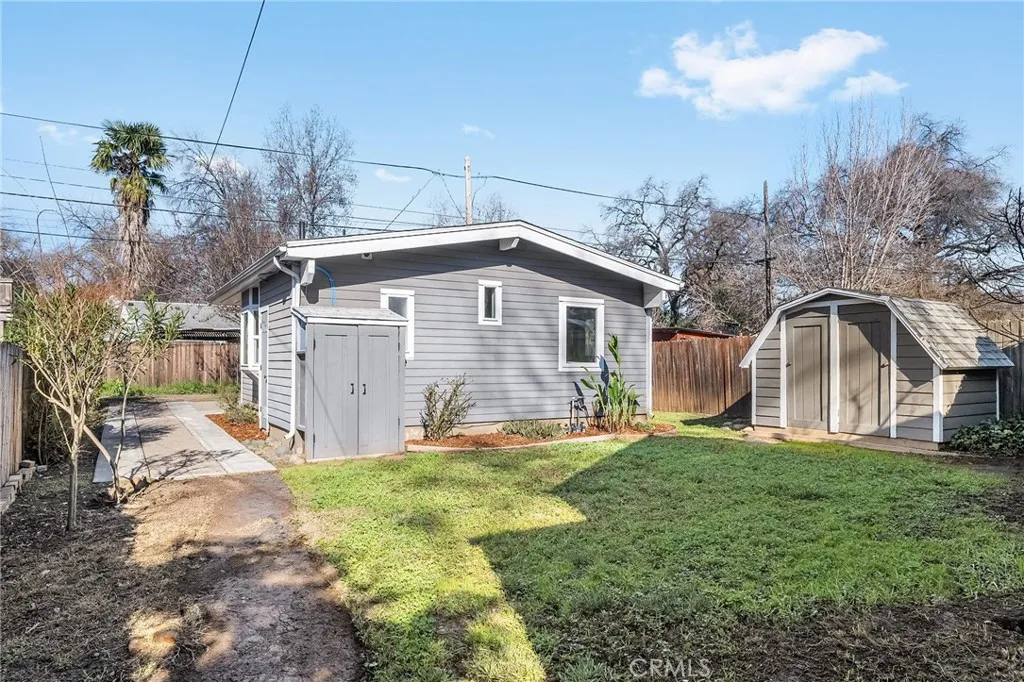 What a gem! Located in the heart of downtown Chico, this charming bungalow offers an incredible opportunity with two homes on one lot, just minutes from Bidwell Park, downtown markets and restaurants, and Chico State. The front home features 2 bedrooms and 1 bathroom and is filled with classic character. Wood flooring runs through most of the living spaces, complemented by beautiful wood-cased windows that keep the home light and bright. The cozy living room centers around a charming white rock fireplaceperfect for relaxing evenings. Just off the living room is an adorable, bright white kitchen with ample cabinet space and a sweet dining nook. A basement provides excellent additional storage. Between the two homes, youll find a spacious shared yard with a storage shed. The back unit is a darling 1 bedroom, 1 bathroom home with its own inviting front patio. Inside, natural light pours into the space, highlighting the high ceilings and a spacious living room complete with a charming window seat. The living area flows seamlessly into the kitchen, which features a large picture window and a peninsula countertop with seating. This unit has fresh white interior paint, dual-pane windows, private washer and dryer closet and its own private driveway with alley access. Whether youre looking for a fantastic investment opportunity or a place to live in one unit and rent the other, this downtown Chico property offers flexibility, charm, and an unbeatable location.