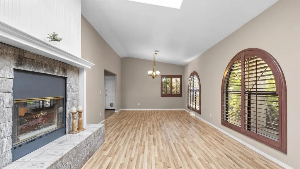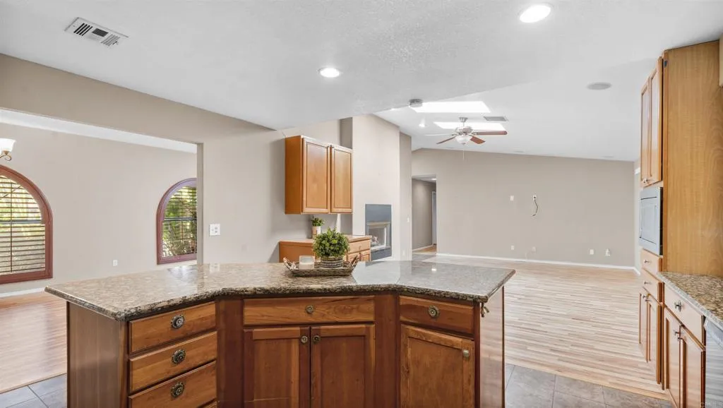 Welcome to 2919 Pioneer Way, Jamul, CA 91935. A stunning single-story ranch-style home set on 1.24 acres of fully usable, fenced land, perfect for entertaining, animals, and enjoying the Jamul lifestyle. This 3-bedroom, 2-bath home offers 1,894 sq. ft. of open and inviting living space with high ceilings, a seamless floor plan, and all-new laminate wood flooring throughout. The spacious kitchen features an island with granite countertops and opens directly to the family room, creating an ideal space for gatherings. Enjoy the warmth of a dual-sided fireplace shared between the living room and family room. The primary suite is a private retreat with its own fireplace, a huge walk-in closet, dual sinks, a walk-in shower, and sliding glass doors leading directly to the backyard. Additional bedrooms are generously sized, offering comfort and flexibility. Step outside to your entertainers dream backyard complete with a large patio, BBQ area, and a private bar, all surrounded by mature fruit trees including guava, lemon, avocado, persimmon, along with passion fruit plants, grape vines, and banana plants. This horse property offers endless possibilities for outdoor living, gardening, or equestrian use. Additional features include a 2-year-old roof, 1-year-old water heater, and a garage with extensive cabinetry and double doors. Conveniently located just minutes from Jamul Casino and Hwy 94, this property offers privacy, space, and accessibility. A must see property with endless potential!