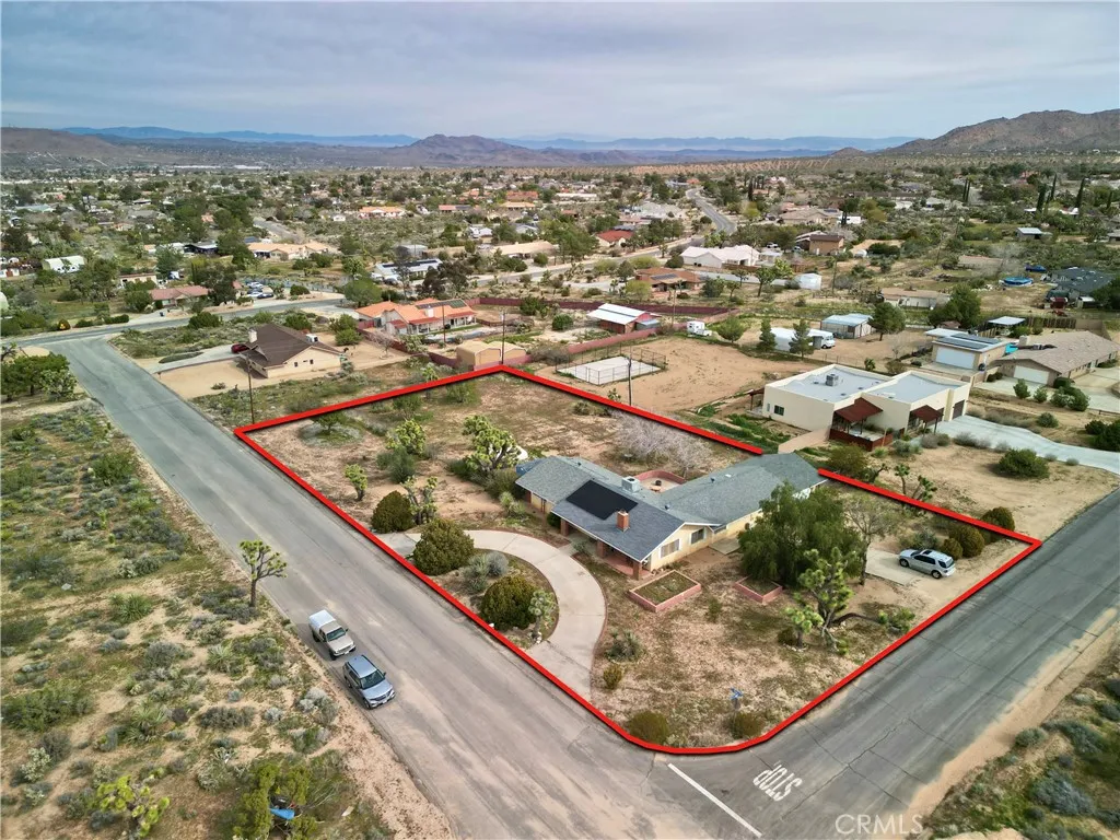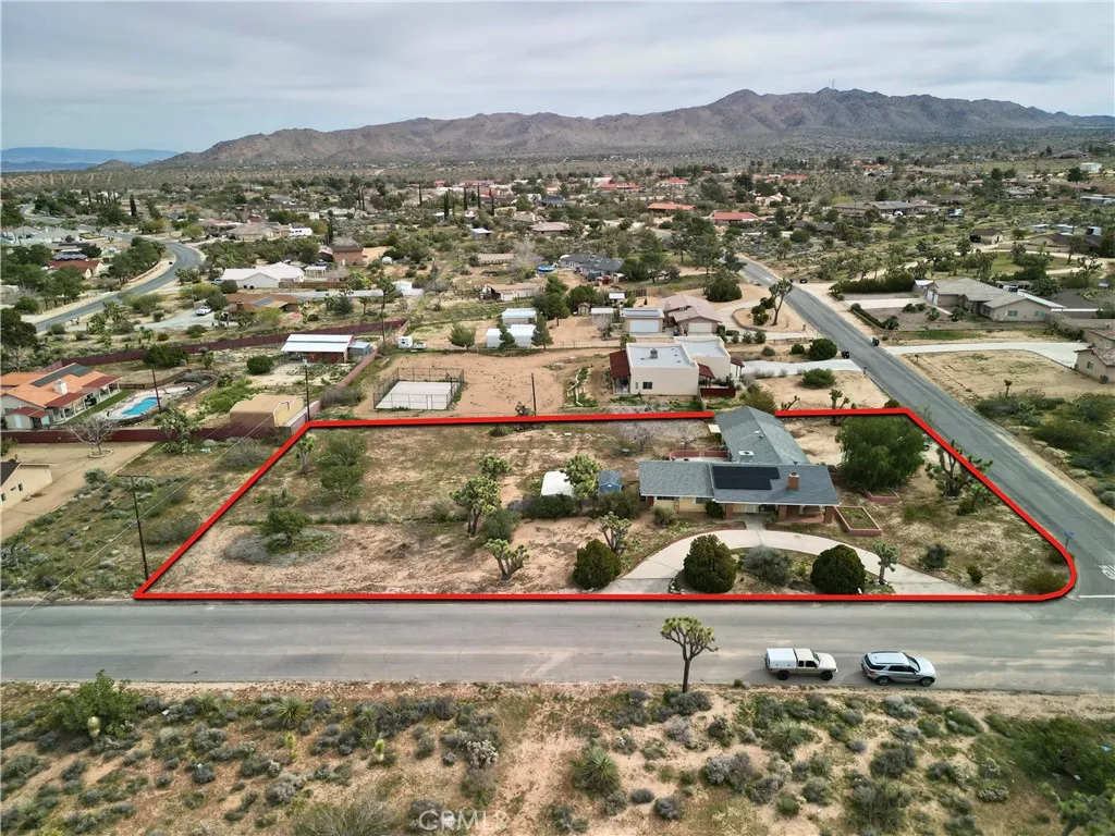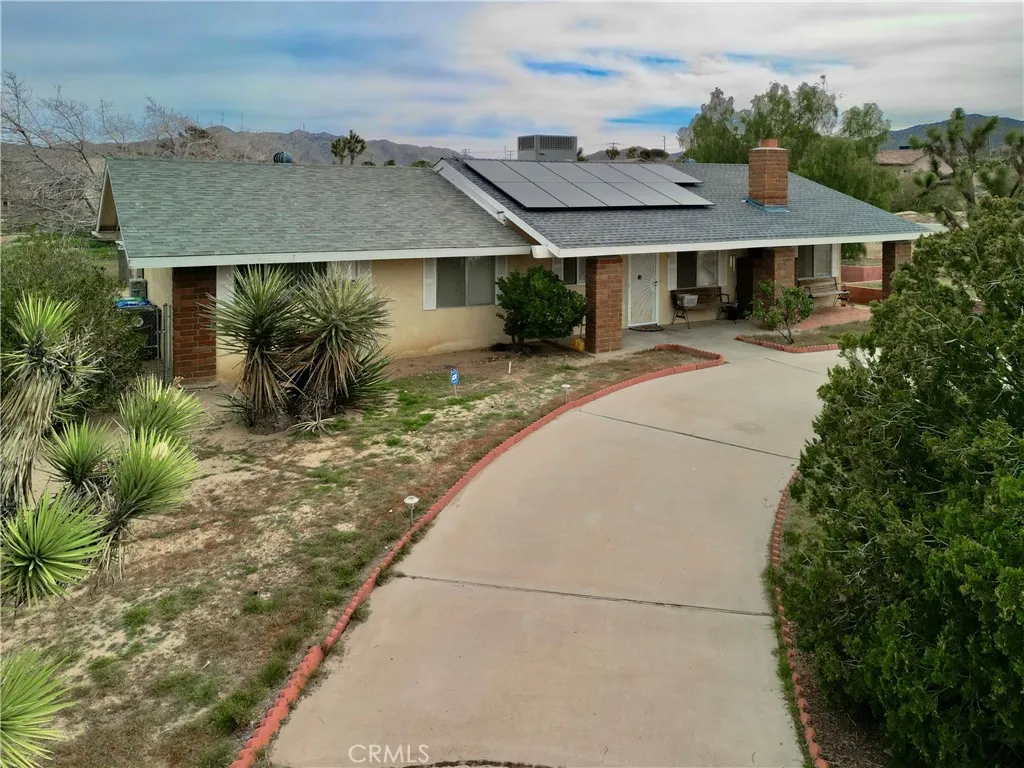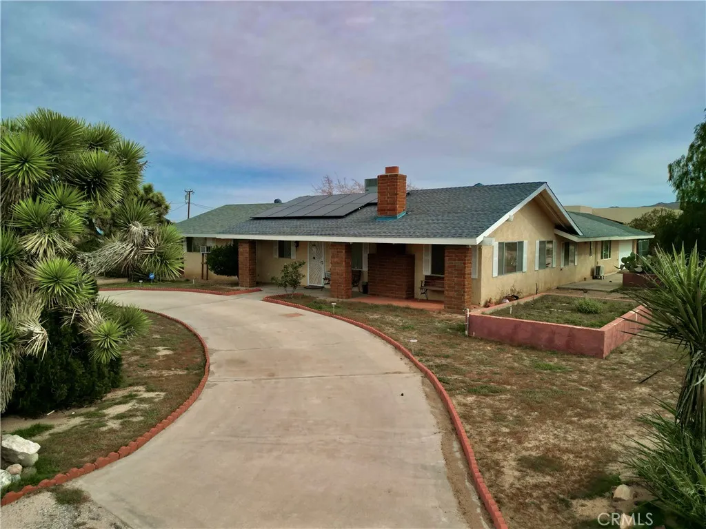Discover this spacious Yucca Valley home offering over 2,400 sq ft of comfortable living space on a corner lot of more than of an acre. Located in the Sky Harbor area, this 4-bedroom, 3-bathroom property features a desirable layout, including two primary bedrooms with their own private bathsperfect for multi-generational living or guest accommodations. Inside, youll find a warm and inviting living room with a cozy fireplace, a formal dining room, and a charming breakfast nook for casual meals. Wood and tile flooring flow throughout the home, adding both style and durability. The convenient indoor laundry room and attached garage provide everyday practicality. Recent upgrades include a newer HVAC unit, a new shed for extra storage, and a low solar lease to help keep energy costs manageable. The expansive, fully usable lot is complete with a circular driveway, chain link fencing, and plenty of space for RV parking, outdoor entertaining, or future possibilities. Dont miss this opportunity to own a versatile and well-appointed home in desirable Sky Harbor!