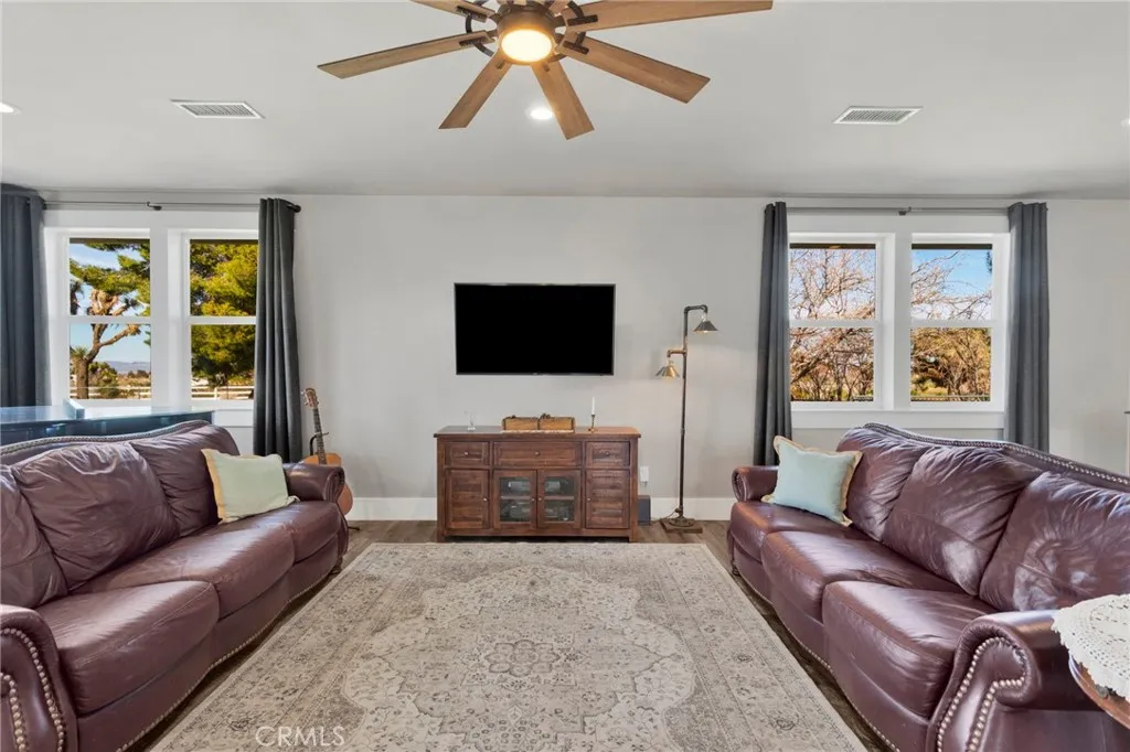Better than new and thoughtfully rebuilt in 2021, this beautiful custom home in Phelan sits on just over 2 acres and is located a short distance to pavement off Goss Road for easy access. A newly poured concrete driveway and electric gate create a welcoming entrance and showcase the quality and care found throughout the property. Offering 2,503 sq ft of living space, the home features high-end finishes and solid craftsmanship throughout. The cozy front porch is a great place to relax and enjoy the mountain views. Inside, the bright open layout is filled with natural light and features 9-foot ceilings, recessed lighting, oversized baseboards, custom window trim, and durable wood-grain waterproof vinyl flooring. The kitchen is the true focal point of the home, designed as a warm and inviting space to gather and entertain. It features an impressive 60-inch commercial-style 8-burner gas range-oven with Z-Line hood, brick backsplash and quartz countertops. A farmhouse enameled cast iron smart divide sink with bridge faucet and ultra-quiet KitchenAid dishwasher add style and function, while modern white cabinetry and a walk-in pantry complete the space. The flexible floor plan offers two oversized primary suites, each with private exterior entrances and ADA-compliant bathrooms with tiled showers and spacious walk-in closets. One suite includes washer/dryer hookups inside the closet. The third bedroom has its own rear entrance, shower, and washer/dryer hookups, ideal for guests or multigenerational living. A powder room sits just off the main living area. Built for comfort and eff