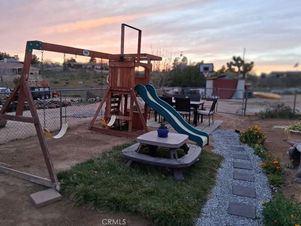 On a hill, a very beautiful view home with plenty of space for all your toys! Close to Victor Valley College and shopping. Quiet street, peaceful neighborhood, covered walkway, 2 covered carports. Two rooms have been converted into one huge primary bedroom, offering extra comfort and flexibility. Enjoy a relaxing side area perfect for family gatherings and outdoor enjoyment. Theres even a dog run for your furry friends. The property features a smooth, gentle slope and breathtaking views of the desert and surrounding mountains. Two storage sheds provide ample space for tools, equipment, and extra belongings. Seller may consider leaving certain items for a price if buyers would like to include them in their offer.