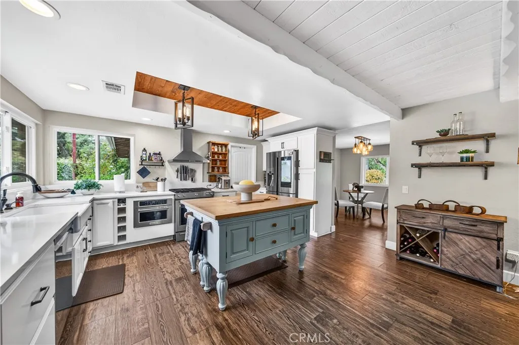 *OPEN HOUSE 3/14 12-2**A Rare Lake View Ranch Where Lifestyle, Land & Opportunity Converge. Welcome to a truly one of a kind equestrian retreat, a meticulously remodeled single story ranch pool home set on nearly 3 acres of fully fenced, usable land overlooking Lake Mathews. Offering panoramic lake and hill views, privacy, and endless lifestyle possibilities, this 4 bedroom home was extensively remodeled with no expense spared. Arrive through an automatic gated entry and step into a home filled with country chic charm and modern farmhouse finishes. Expansive windows frame lake, hillside, garden, and pool views from nearly every room. Wood plank tile flooring flows throughout. Formal living and dining spaces open seamlessly to the chefs kitchen featuring quartz countertops, KitchenAid stainless steel appliances (stove and microwave) brand new Lg dishwasher, and a farmhouse sink perfectly positioned to take in the scenery an ideal setting for entertaining. The family room with brick fireplace sits just off the kitchen and opens to a fully enclosed addition, offering flexible space for a variety of needs. Bedrooms are generous in size, and the primary retreat opens directly to the backyard perfect for morning coffee, quiet evenings, and listening to nature. Both bathrooms have been beautifully updated with high end finishes. Outdoors, unwind in the resort style pool and spa or watch the sunset from your tree swing as the property unfolds into a versatile agricultural and equestrian setting. The land accommodates horses, includes existing stalls, and features a massive covered