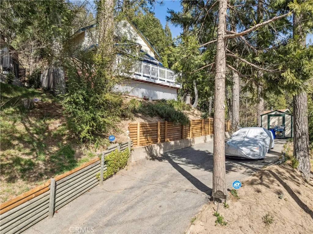 Modern rustic lake house blends nostalgic charm with updated luxury. Above the shores of Lake Gregory & moments from the heart of town. A one-of-a-kind mountain retreat captures the warmth of a classic mountain chalet yet offering comfort, efficiency, & convenience of a renovated Smart home. The oversized deck/porch provides an amazing setting, with ridgeline & lake views through the surrounding majestic cedars. Great for entertaining under the stars, watching 4th of July fireworks, & embracing the mountain resort lifestyle. Ideally located near lake trails, shopping, dining, entertainment, local services, & year round activitiesthis also makes for a great commuter location! The exterior features new decking, retractable awnings, 4+car parking, beautifully landscaped terraced gardens, a fenced oasis of a backyard creating a sense of privacy, two storage sheds (one with power), new retaining walls, upgraded electrical panel with room to grow, EV charger, & generator. Inside, new wood flooring & carpet complement custom oak ceilings, wood burning fireplace, copper plumbing, upgraded electrical with dimmers, farmhouse-style ceiling fans, mini-split, and top of the line amenities. The main level offers a welcoming living room, beautifully refurbished kitchen (wifi appliances & butcher block counters), dining area, bathroom, laundry, and direct access to the serene back yard. Upstairs are two bedrooms, including a luxurious primary ensuite with jetted spa tub with light therapy, bidet, and skylight. Second bedroom doubles as inspiring office/creative studio, complete with fiber