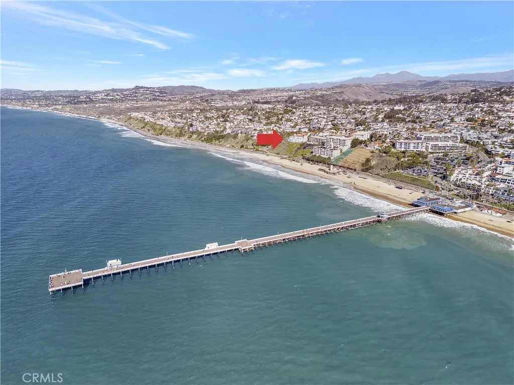 Live just steps to the sand! This Ocean & San Clemente Pier View open concept Vista Pacifica Villas single level condo is perfect for relaxing or entertaining. Large kitchen with granite counters and stainless steel appliances, dining room, and spacious living area make this perfect place to call home. Oversized Primary Bedroom and generous sized Secondary bedroom offer plenty of space. Both bedrooms feature French Doors leading to the Ocean View patio. Additional highlights include two designated parking spaces with electric vehicle charging station and guest parking. Vista Pacifica Villas is a gated community offering secured entry and two elevators. Situated in arguably the worlds greatest climate you will enjoy surfing, downtown shopping, restaurants, parks, festivals, and Southern California's coastal ambiance all within walking distance.