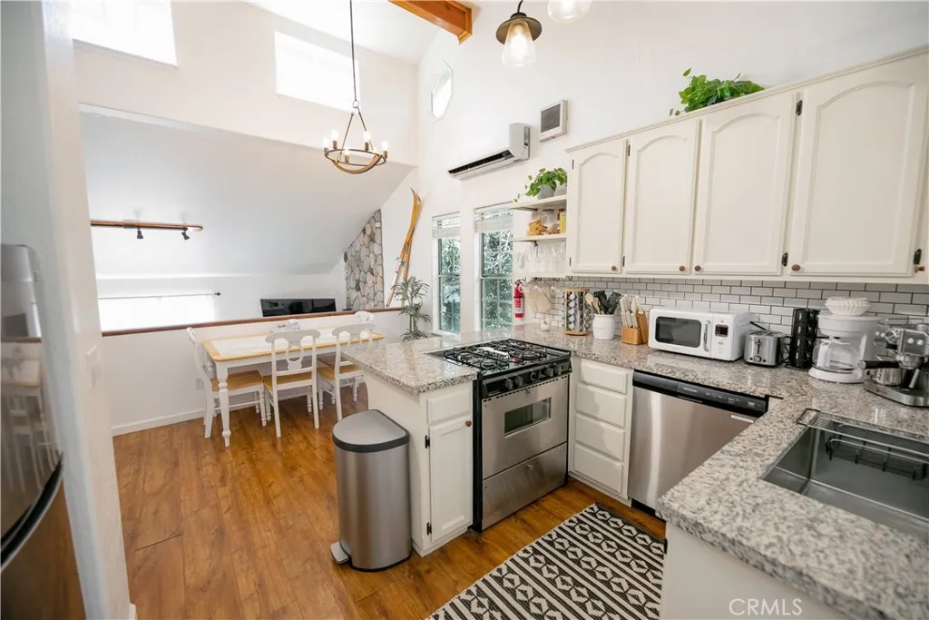 Nestled among the trees in beautiful Crestline, 455 Delle Dr offers the perfect blend of mountain charm and everyday comfort. This inviting home features a functional, light-filled floor plan with warm wood accents and a cozy atmosphere ideal for full-time living or a weekend retreat. The spacious living area flows into the kitchen and dining space, creating a comfortable setting for entertaining or relaxing after a day in the mountains. Large windows bring in natural light and showcase the surrounding greenery. Step outside to enjoy your private outdoor space complete with a spa perfect for unwinding under the stars and enjoying the peaceful mountain setting year-round. Conveniently located just minutes from Lake Gregory, local shops, dining, and hiking trails, this property offers both privacy and accessibility. Whether you're seeking a primary residence, vacation home, or investment opportunity, this Crestline property delivers exceptional mountain living.