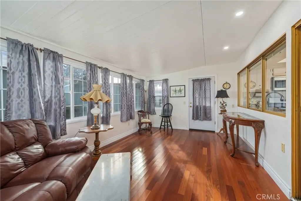 Welcome to this charming single-story 1 bedroom, 1 bathroom home located in the highly desirable 55+ Oceana community in Oceanside. This well-maintained residence offers comfortable coastal living just minutes from beautiful beaches, shopping, dining, and major freeways. This light and bright home features an open living and dining area, a functional kitchen with ample cabinet space and granite countertops and dedicated dining space. Brazilian hardwood floors add elegance and easy care to the house. The spacious primary bedroom is designed for comfort and convenience. Large glass doors allow plenty of natural light in the house and peek a boo views of the mountains. There is an enclosed sun room for added space. The bathroom has been tastefully remodeled making this home move in ready. The single-level floor plan provides easy accessibility, making it ideal for low-maintenance retirement living. Whether you are looking to downsize, purchase a vacation retreat, or enjoy an active and social senior lifestyle, this welcoming community features popular activities such as pickleball, water aerobics, golf, and group exercise classes.