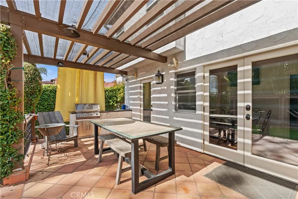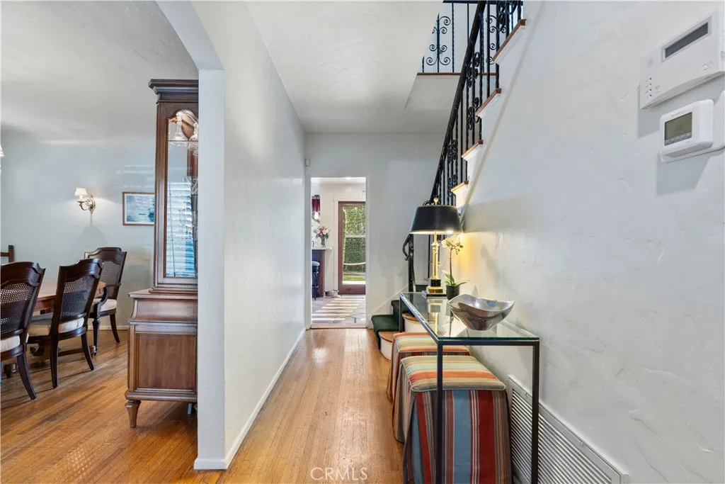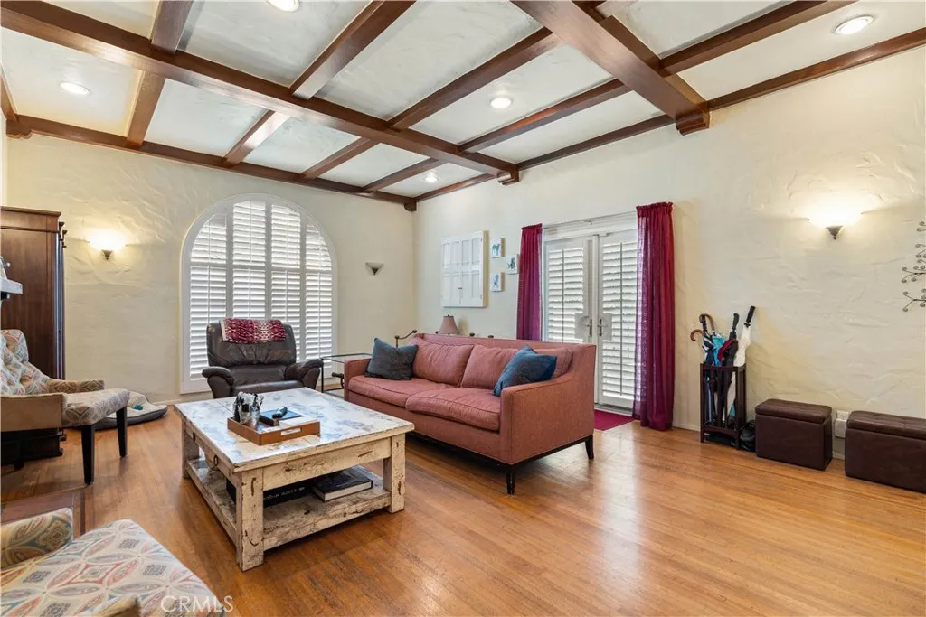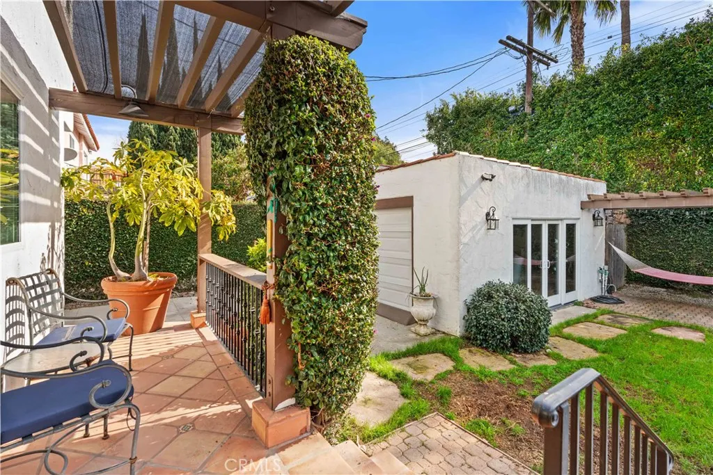BEVERLY GROVE SOPHISTICATED SPANISH CHARMER . Charming 1927 Spanish two story located in prime Beverly Grove. This splendid home is within walking distance to the Beverly center. the Grove, shops and neighborhood cafes. Graced by a gated, enclosed front courtyard, you enter this home through an arched entry and foyer into a step down captivating living room with beamed ceilings, French doors, an arched window, a wood burning fire place and hardwood floors. The ample dining room is flooded with light from the front French doors and reflects the courtyard and gleaming greenery. Leading from the dining room into the updated kitchen is a lovely breakfast nook overlooking the back yard and outdoor kitchen. Adjacent to the kitchen is a separate laundry room and downstairs bedroom suite with bath. Ascending the curved staircase you enter a large landing leading to a spacious primary suite with ensuite bath and front balcony. The two other ample sized bedrooms have complete full bath and dual sinks. On the exterior grounds there is a double detached garage and gated driveway. This is truly a vintage gem in a chic sophisticated neighborhood...