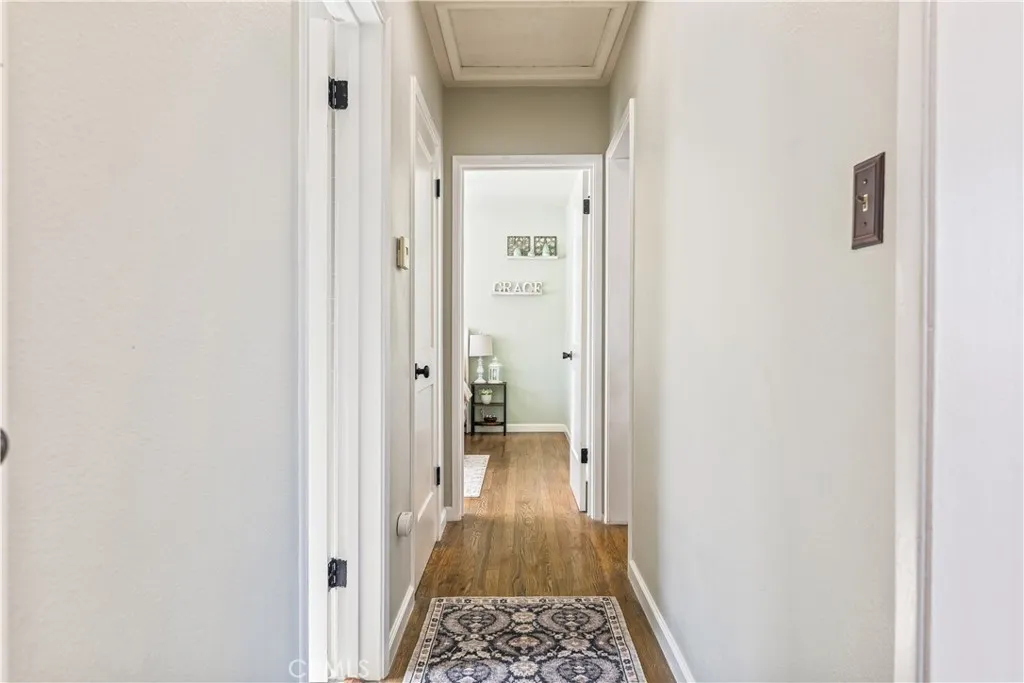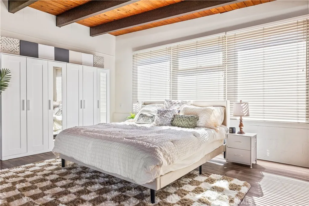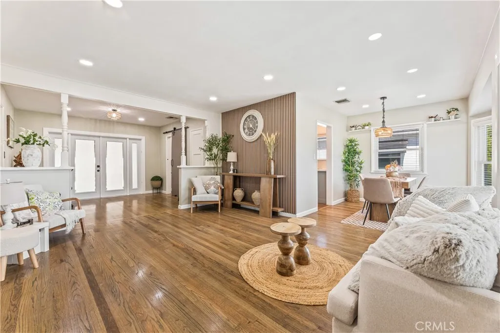Welcome to this beautifully updated home located on a quiet, tree-lined street in the heart of Lakewood, just moments from local parks and a nearby golf course. Offering a flexible and functional layout, this home combines comfort, style, and versatility. Step inside to an open-concept living and dining area featuring rich wood flooring, recessed lighting, and a warm wood accent wall. Fresh interior and exterior paint, along with updated window frames, create a clean and well-maintained presentation. The remodeled kitchen is designed for both everyday living and entertaining, complete with quartz countertops, refreshed cabinetry with updated hardware, and newer appliances including a wall oven, gas cooktop with designer hood, dishwasher, and upgraded sink and faucet, accented by custom wood detailing. A spacious family room is currently used as a primary bedroom, showcasing exposed wood beam ceilings, a decorative fireplace, custom double-pane glass doors, and a built-in closet systemcreating a comfortable and private retreat. This versatile space can easily adapt to your needs, whether as a primary suite, additional living area, or home office. The private backyard features refreshed landscaping and a covered patio, perfect for outdoor dining and relaxation. A long driveway offers ample parking, while the finished drywalled 2-car garage provides flexible space for a gym, workspace, or additional storage. Additional highlights include dual-pane vinyl windows and solar panels. Ideally located near shopping, dining, parks, and major freeways, this move-in ready home offers a
