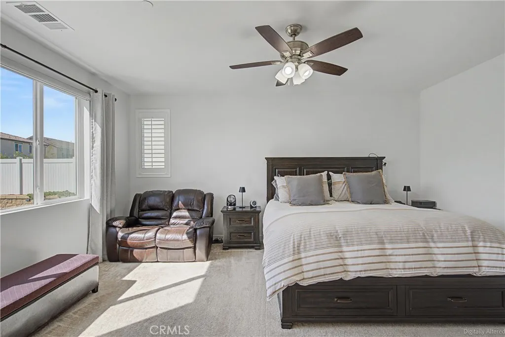 **BACK ON THE MARKET AFTER BUYERS FAILED TO PERFORM** Welcome to this beautifully designed, one story, single-family home nestled among the largest homes and lots in the River Ranch planned development. Offering 2,140 sq. ft. of modern living space on a generous 8,779 sq. ft. lot. with PAID-OFF Solar Panels, this home was built in 2023 and showcases an open-concept layout with 9-foot ceilings throughout-perfect for both entertaining and everyday living. The gourmet kitchen features slab-granite countertops with a 6" backsplash and full-height backsplash behind the cooktop, a stainless steel sink, and upgraded stainless steel appliances. White shaker-style cabinetry includes finished interiors, concealed hinges, sleek bar pulls, decorative crown molding, large pot-and-pan drawers beneath the cooktop, and a spacious pantry for ample storage. The home was enhanced with ceiling fans, plantation shutters, and remote-control shutters in the great room, dining area, and owner's suite. Upgraded laminate flooring flows throughout the main living areas, while plush upgraded carpeting adds comfort in the bedrooms. A tankless water heater provides energy efficiency and endless hot water for added comfort and convenience. The luxurious primary bathroom offers dual sinks with smooth-surface countertops and a 4" backsplash, a semi-frameless clear glass-enclosed shower with Moen chrome fixtures, and a relaxing soaking tub with Moen chrome deck-mounted fixtures. The spacious primary suite also includes a large walk-in closet with abundant shelving and storage. This house also offers a 'FLEX