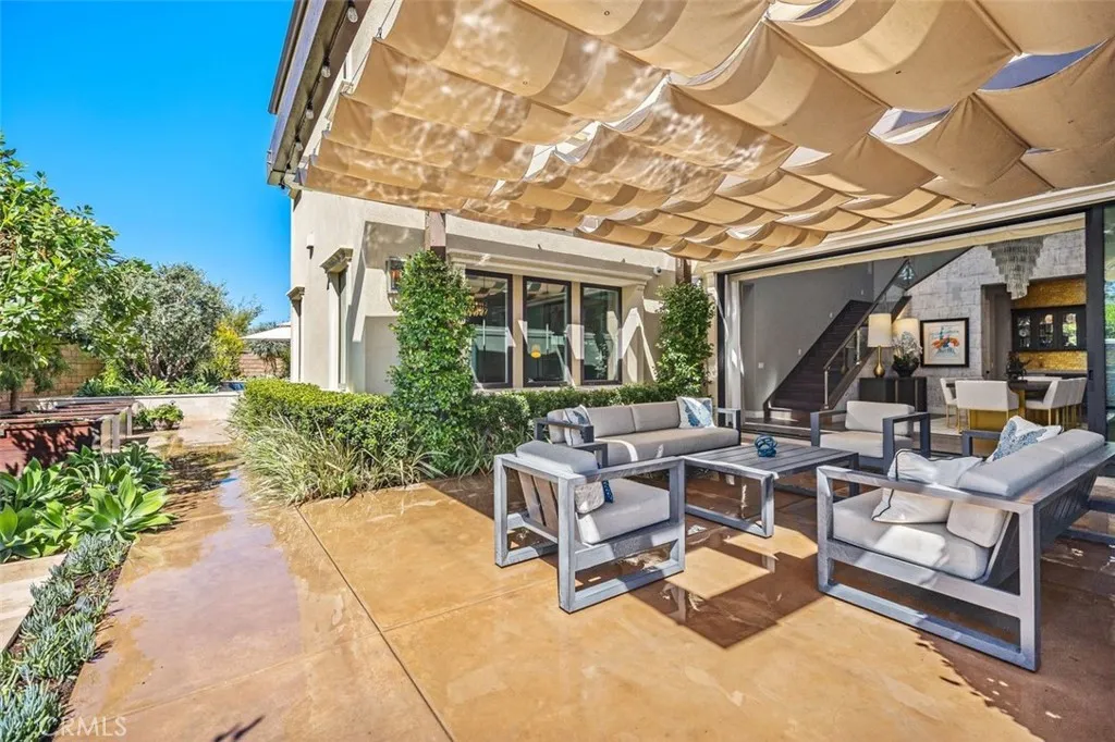 Nestled Amongst Tranquil Avocado Orchards and Rolling Hills, This Extraordinary Alta Vista Residence Embodies the Pinnacle of Modern California Luxury. Perched on an elevated corner lot with commanding hillside views, 116 Knob Creek rests within the exclusive Vistas enclave at The Groves of Orchard Hills. Boasting over $1 million in interior and exterior upgrades, this modern architectural masterpiece blends refined sophistication with effortless indoor-outdoor living. From the moment you arrive, the homes modern interpretation of Spanish Colonial architecture is framed by lush landscaping, citrus trees, and a welcoming pedestrian approach. Inside, more than 6,000 square feet of open-concept living unfolds beneath soaring ceilings, where abundant natural light connects the interiors to serene surroundings. The dramatic foyer introduces a spectacular formal dining room with clerestory windows rising over twenty feet, flanked by dual glass staircases with sleek steel accents. Perfect for entertaining, this grand space opens to a private courtyard with a tranquil wall fountain. The magnificent great room, anchored by a 60-inch stone-clad linear fireplace, flows seamlessly to a resort-style California Room designed for alfresco gatherings. The chefs kitchen is a showpiece appointed with Sub-Zero, Wolf, and Miele appliances, dual integrated refrigerator/freezers, quartz countertops, and custom Genoa cabinetry. Multiple pocket doors dissolve the boundaries between indoor and outdoor spaces, revealing a breathtaking backyard oasis. Outdoors, enjoy a full outdoor kitchen with Lynx