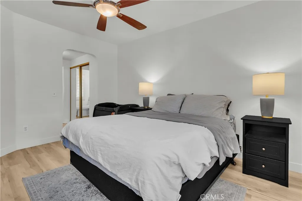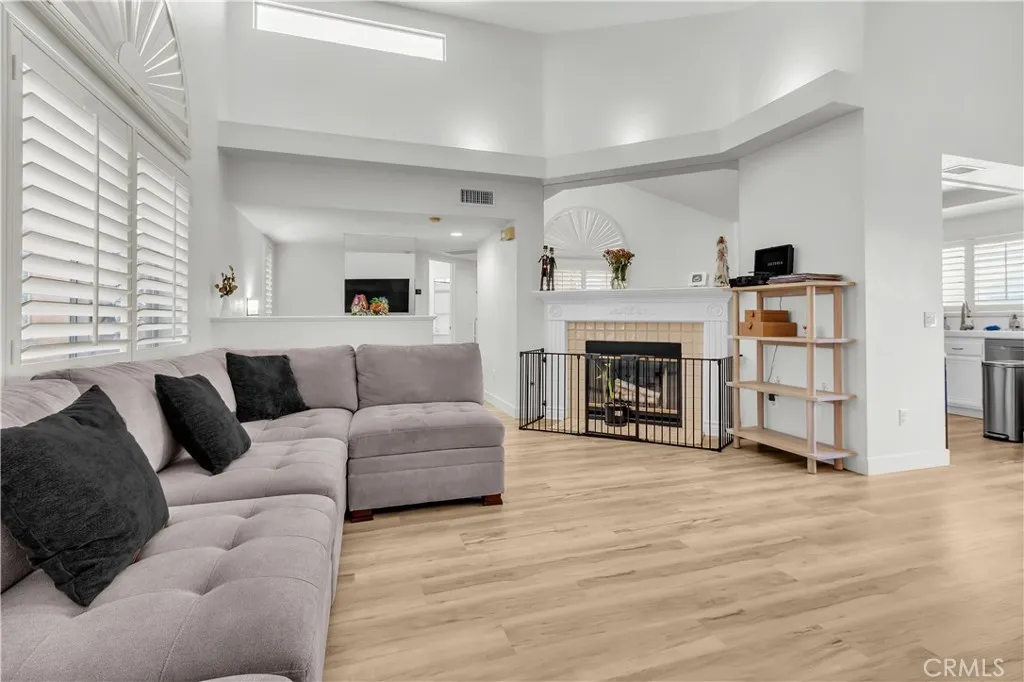 A perfect home move-in ready awaits you. As you enter this well manicured community, you can't help but notice all of the mature landscaping creating several shady green belts throughout the community. Conveniently located near great schools, shopping and the 5 freeway for commuters. Situated towards the back of the community, near ample shaded visitor parking, convenient for all of your guests. As you step into the foyer, you will notice the attached garage to the left and a stairway to the upper living area. The living area is spacious and features a cozy fireplace and nice size dining area. Located off the kitchen and balcony. A great area for entertaining family and friends as well as just hanging out after a long day. Down the hall find a hall bathroom, perfect for guests as well as the smaller bedroom. The master bathroom and master bedroom are a nice size en suite. This home features luxurious vinyl flooring and newer paint, shutters throughout, updated wide baseboards and lots of natural light. The HVAC was replaced in 2020 and the water heater in 2021.