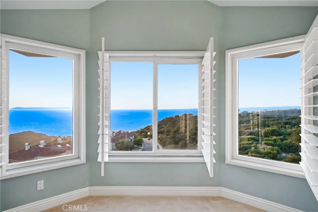 Embrace premier coastal living only minutes from Dana Point Harbor and Laguna Beach, with the beauty and calming sound of waves along the iconic Montage coastline just moments away. Located on a quiet cul de sac within the exclusive 24 hour guard gated community of Laguna Sur, this exceptional tri level Monte Carlo residence offers approximately 3,183 square feet with 3 bedrooms, 3.5 bathrooms, three fireplaces, and a two car attached garage. Thoughtfully remodeled throughout, the home reflects quality upgrades and timeless design, with the kitchen and bathrooms beautifully updated in recent years. Enter through a dramatic foyer with soaring ceilings and immediately experience spectacular panoramic views of the ocean, Catalina Island, coastline, city lights, and canyon from nearly every room. The upgraded kitchen features granite countertops, updated cabinetry, recessed lighting, and opens seamlessly to the main living areas, creating a stunning and functional space for both everyday living and entertaining. Impressive ceiling heights enhance the spacious living and dining areas, filling the home with natural light and emphasizing the open, airy design. The residence offers two private patios, each with ocean views, providing ideal settings for morning coffee at sunrise or relaxing in the evening while enjoying breathtaking sunsets year round. The lower level also features a generous outdoor space perfect for entertaining family and friends. Laguna Sur offers resort style amenities including a sparkling pool, rejuvenating spa, tennis courts, pickleball, and scenic walking t