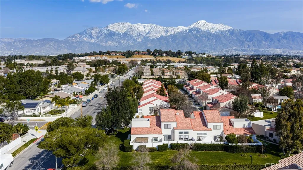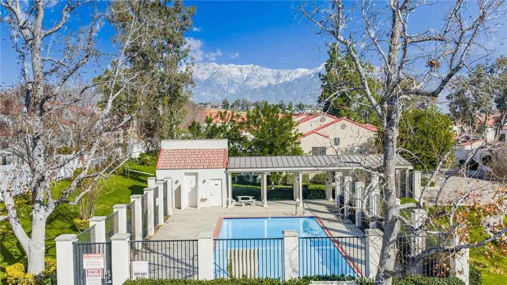 Welcome to 8513 Salina St in Rancho Cucamonga a beautifully single-story 2-bedroom, 1-bath corner condo offering vaulted ceilings, abundant natural light, and modern upgrades throughout. This home lives larger than expected thanks to soaring ceilings and striking arched windows that fill the living space with natural light. Recently painted and featuring stylish laminate wood flooring flows throughout the main living areas and bedrooms, while the kitchen and restroom features durable ceramic tile flooring. The interior offers a fresh, clean, contemporary feel from the moment you walk in. The fully remodeled kitchen showcases crisp white cabinetry, stunning quartz countertops, stainless steel appliances, and a modern tile backsplash. The open layout flows seamlessly into the dining area and out to a private patio with pergola, creating an ideal indoor-outdoor setting for relaxing or entertaining. The bathroom has been tastefully updated with a full tile shower surround, built-in niche, and updated vanity with quartz counter, complementing the homes cohesive design. An attached two-car garage adds everyday convenience. Residents also enjoy access to a community pool set against scenic mountain views. Built in 1986 and ideally situated near shopping, dining, and freeway access, this turnkey home is move-in ready and a must-see.