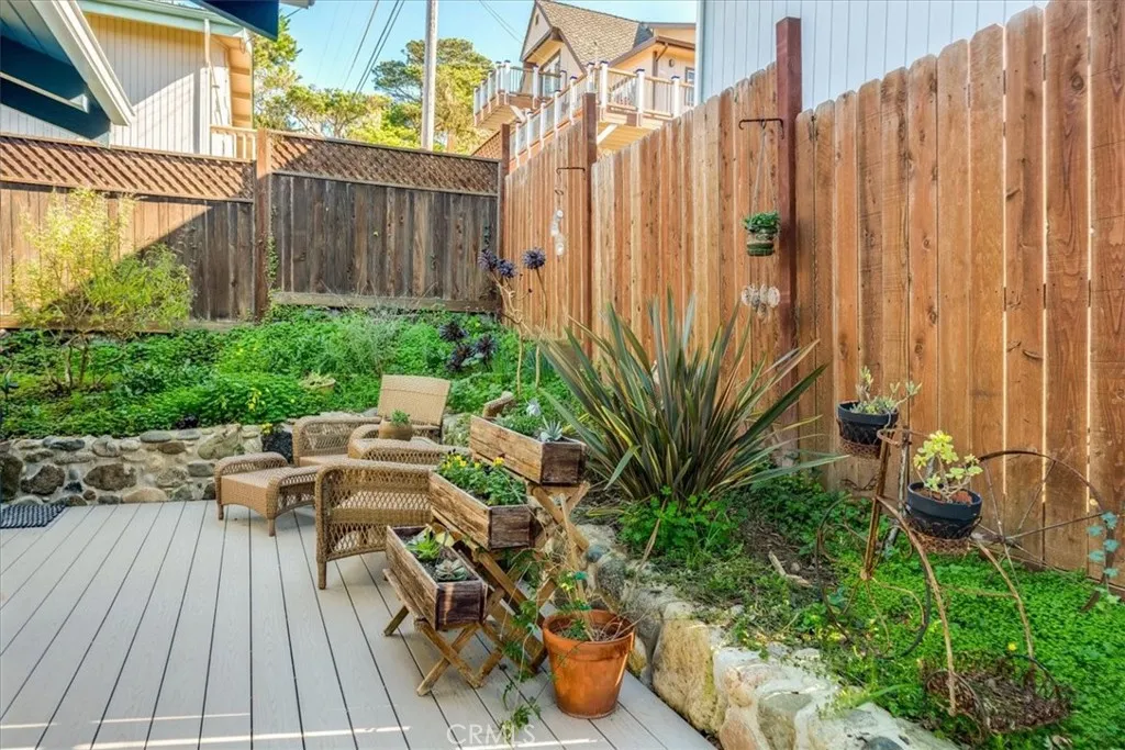 Situated to capture sweeping views of Santa Rosa Creek, the Pacific Ocean, and the Santa Lucia Mountains, this move-in-ready two-bedroom, two-bath home offers a beautiful blend of comfort and scenery. The living room features vaulted ceilings and expansive ocean views, creating a light and inviting atmosphere. The updated kitchen is equipped with granite countertops and modern finishes, ideal for everyday living and entertaining. The primary bedroom includes a charming sitting area where stunning ocean views provide a peaceful retreat. A versatile hobby room located off the two-car garage has been used as a sewing room and offers flexible space for creative pursuits or a home office. Outdoor living is enhanced by a flagstone viewing area in the front yard and a fully fenced backyard with a flagstone patio, perfect for relaxing or entertaining while enjoying the coastal surroundings.