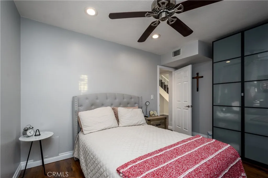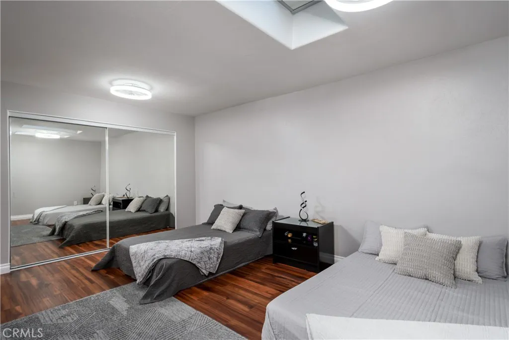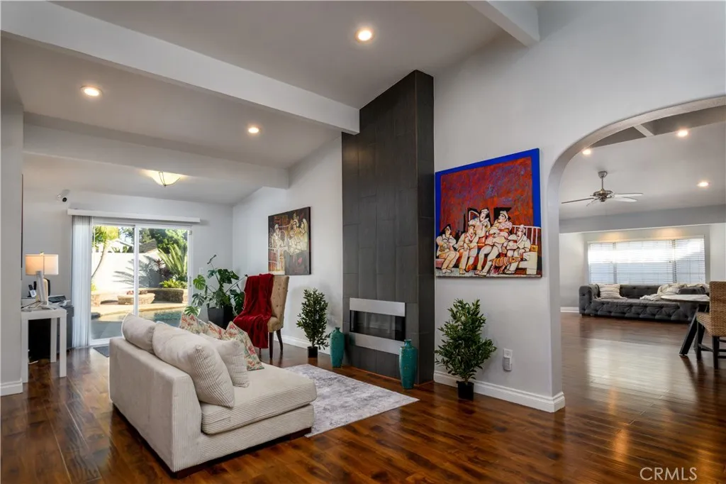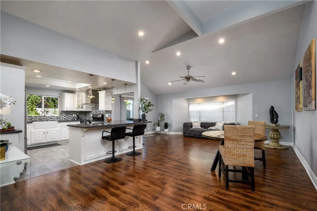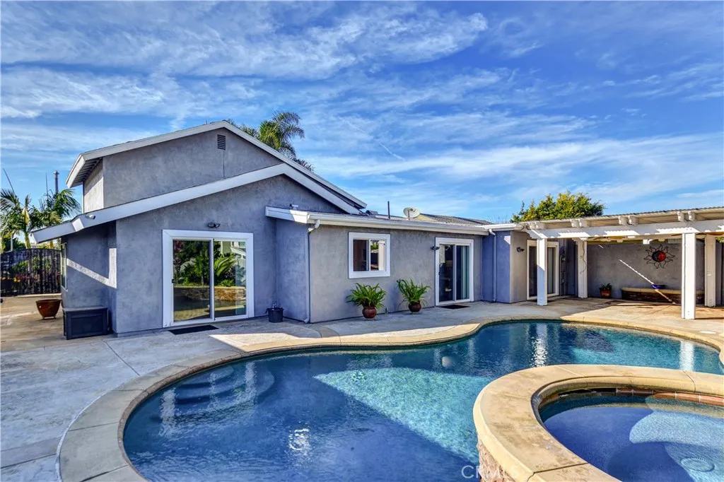 Pool home located on a quiet cul-de-sac in the highly desirable Alta Placentia neighborhood of Placentia. Welcome home to this stunning 5-bedroom, 3-bath residence featuring a versatile multi-generational floor plan with 3 spacious bedrooms downstairs and 2 upstairs, ideal for multi-generational families or flexible living arrangements. While the home is noted at approximately 2,144 square feet, the thoughtful floor plan and open living areas create a home that feels spacious and lives larger than its recorded size. When previously purchased, the home was advertised at approximately 2,500 square feet, and the enclosed atrium and expanded living areas contribute to the homes spacious feel. The middle bedroom was expanded by enclosing a former atrium, creating a spacious room with skylights and dual ceiling fans. The family room has also been extended to create an inviting entertainment space. The open-concept kitchen features quartz countertops, stainless steel appliances, a glass tile backsplash, and pendant lighting over the island. A recessed ceiling detail adds architectural interest as the kitchen flows seamlessly into the dining and living areas. Laminate flooring runs throughout, complemented by high ceilings and skylights that fill the space with natural light. A floor-to-ceiling brick fireplace and soaring ceilings add character to the living space, while sliding glass doors from the living room, family room, and primary suite provide natural light and openness. The downstairs bathrooms have been tastefully remodeled with floating vanities, modern tile, and sleek gl