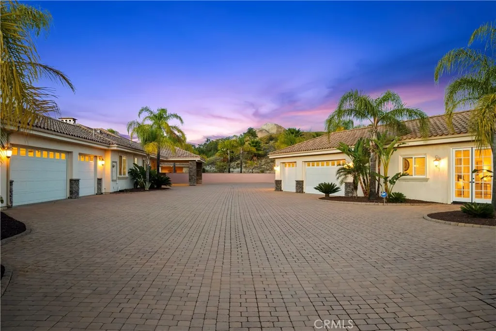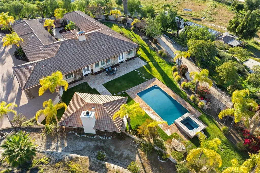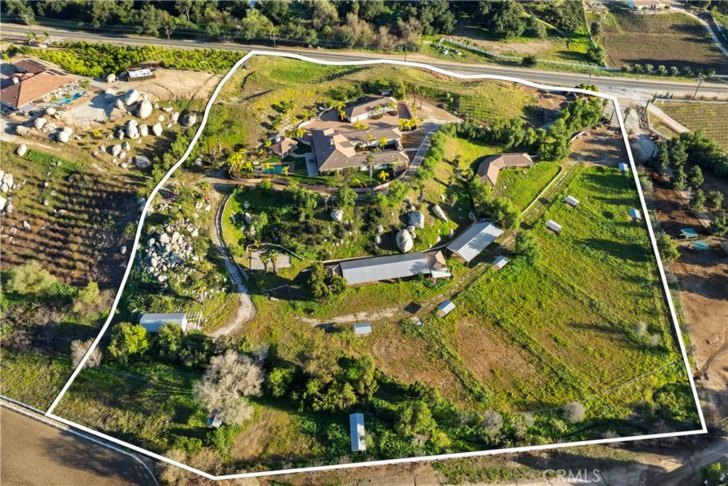 This is a rare opportunity to own a private Wine Country estate that seamlessly blends natural beauty, usable land in one of Temeculas most desirable locations.Wake up to hot air balloons rising in the early morning sky and unwind with breathtaking sunsets over your own private estate! Spanning approximately 5,507 square feet, this custom-built 5-bedroom, 5-bath residence sits atop 9.15 acres of scenic land. A detached 1,000-square-foot guest villa (1 bed, 1 bath ADU) with ideal flexibility for multi-generational living, guests, rental income, or on-site staff.A long custom paver driveway leads up the hill to the home, creating a grand sense of arrival. At the entrance, youre welcomed by an expansive courtyard-style setting (atrium), allowing natural light to pour into the surrounding rooms and enhancing the homes bright, airy feel throughout.Inside, soaring high ceilings and crown molding elevate the space. The open-concept kitchen and family room form the heart of the home, designed for both entertaining and everyday living. The chefs kitchen features high-end stainless steel appliances, including matching Viking refrigerator and freezer units, a Fisher & Paykel 6-burner range, and a Thermador oven. The kitchen opens seamlessly to the family room with custom cabinetry and a fireplace, while formal living and dining rooms with elegant spaces to host guests.The bedroom layout is thoughtfully designed for privacy and comfort. In addition to the magnificent primary suite, two secondary bedrooms share a well-appointed Jack-and-Jill bathroom, while two additional bedrooms each