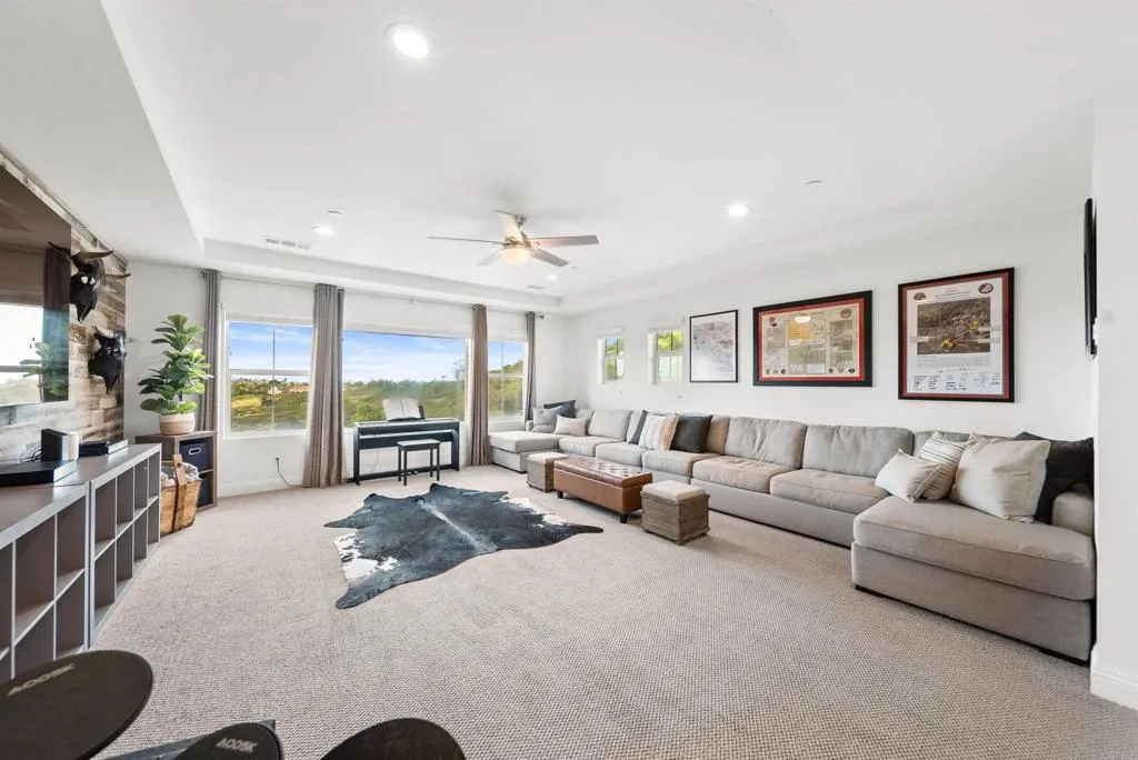When panoramic views, privacy, and elevated living come together on over 2 acres, the result is truly spectacular. Welcome to a rare custom hilltop estate in prestigious Highcrest Court Estates where sweeping mountain vistas and tranquil surroundings create a setting that feels like your own private resort. Thoughtfully designed with both comfort and entertaining in mind, the flexible floor plan showcases exceptional craftsmanship and refined finishes throughout. The layout features a grand entry-level primary suite, dedicated downstairs office, spacious secondary bedrooms, and an oversized loft that adds versatility. At the heart of the home, a chef-caliber kitchen opens to expansive living areas filled with natural light and framed by breathtaking views. Energy-efficient features include owned solar, Tesla EV charging, LED recessed lighting, radiant roof barriers to help regulate temperatures, two tankless water heaters with on-demand pumps, low-VOC paint, dual-zone HVAC systems, and solar heating for pool and spa. Step outside to a fully custom outdoor retreat with a saltwater pool and spa overlooking the valley, view deck, two BBQ areas, putting green, batting cage, fitness space, artificial turf, outdoor shower, and multiple seating areas designed for entertaining. The extended driveway enhances the estate-like feel of the property and offers ample parking. One of just ten custom residences in this exclusive enclave, it captures the tranquility of feeling tucked away while still close to all. This is the expansive one-of-a-kind property you've been dreaming of!