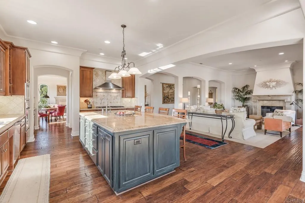 The privacy on this hilltop of over 6 acres will ensure a calm and tranquil lifestyle away from it all and yet only minutes to commute corridors. Superior quality and attention to detail are evident throughout. The greatroom with adjacent kitchen and eating area opens to a covered patio with fireplace that extends to inviting pool and spa overlooking the views beyond. Southern California indoor to outdoor living at it's best. The kitchen with expansive island, dual dishwashers, wine fridge, 6 burner cooktop and butler pantry will provide interaction with guests while entertaining. There is an additional space adjacent to garage for a bonus room or workshop. Don't miss the nearby hiking trails along the Santa Margarita River.