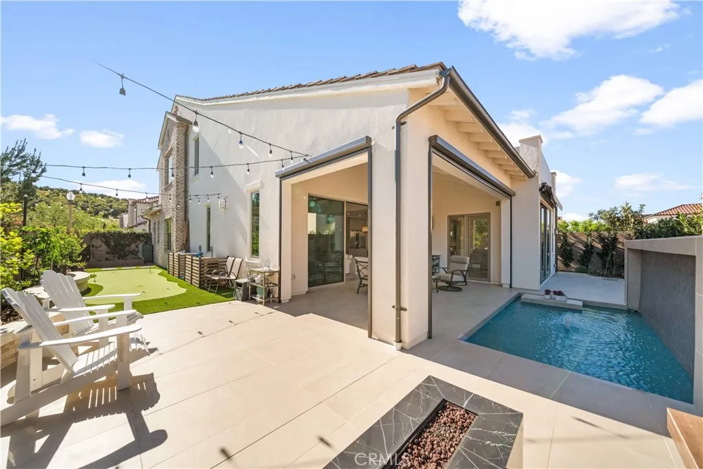 Corner Lot | Over $700K in Upgrades Surpassing the Model Home | Rare Ravello 3X floor plan with Permitted Expansions Located on a premium corner lot in the prestigious 24-hour guard-gated community of The Groves at Orchard Hills, this home offers enhanced privacy and abundant natural light. This extensively customized Ravello 3X residence showcases over $700K in luxury upgrades along with rare permitted expansions, creating a unique floor plan within the community. Designed with an elegant open-concept layout, the residence features Euro oak engineered hardwood flooring, recessed lighting, crown molding, custom paint, and designer wall sconces. The great room boasts soaring ceilings with decorative beams, sliding glass doors, and a statement fireplace wrapped in large-format tile with custom built-in cabinetry. The chefs kitchen features floor-to-ceiling illuminated glass cabinetry, premium Wolf appliances, and a custom Sub-Zero refrigerator with wine display and walk-in pantry. A Marbolis Niaca leathered stone waterfall island with matching backsplash anchors the space. The kitchen flows into the formal dining area and a bright breakfast room surrounded by glass sliding doors. Motorized retractable shades provide privacy and sun control. A prep kitchen offers flexibility for cooking. The main level also includes a guest suite, powder room, and an office with sliding doors. A glass staircase leads to the second level featuring a spacious loft and three additional bedroom suites. Each bedroom offers its own highly upgraded en-suite bathroom with elegant wainscoting and desi