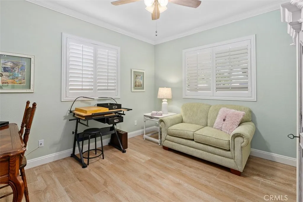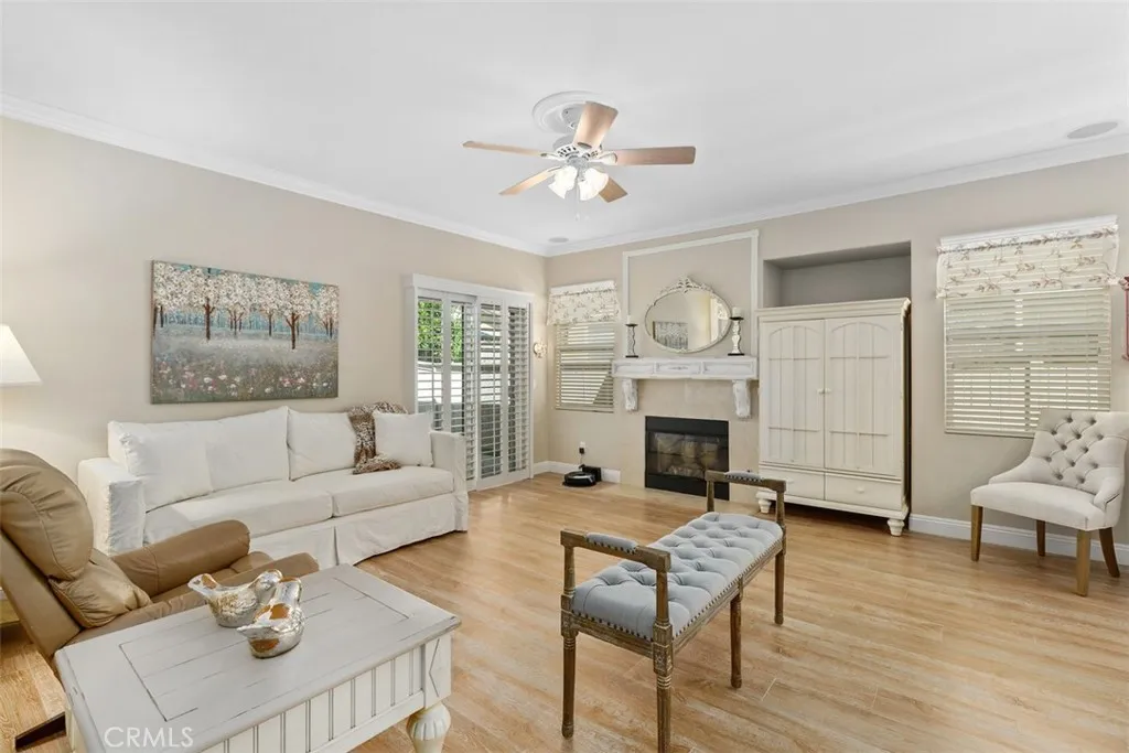 Absolute Beauty!! The attention to detail makes this home a must see in this highly desirable 55+ community, the Oasis. The beautiful, beveled glass door welcomes you into this pristine well-designed home with open floorplan. The front room showcases as a formal living or sitting room with its elegant crystal lighting feature, crown molding, and plantation shutters. The immaculate kitchen features upgraded cabinets, stainless steel appliances including brand new dishwasher, quartz countertops, walk-in pantry with etched-glass door, center island and is open to dining area and the family room with its lovely mantled fireplace. You will find well thought-out, refined features throughout this home which include delicate moulding artfully crafted to enhance the home and architectural corbel and transom windows adding elegance and formality to each space. High-quality laminate flooring with aesthetics of real wood is featured throughout the home. Spacious master bedroom offers sliding glass doors accessing the back yard, plantation shutters, and ceiling fan, with remodeled master bathroom featuring walk-in shower, designer cabinetry, quartz countertops, large walk-in closet with storage space. There are two other spacious rooms, one is an office/craft room and the other a guest bedroom. All rooms have ceiling fans, plantation shutters, base and crown moulding. The backyard is a personalized golfers oasis with mini multi-hole putting greens. The owners put love and care and over $100k in upgrades making this home a treasure. The HOA offers top-notch amenities; a 22,500 sq ft club