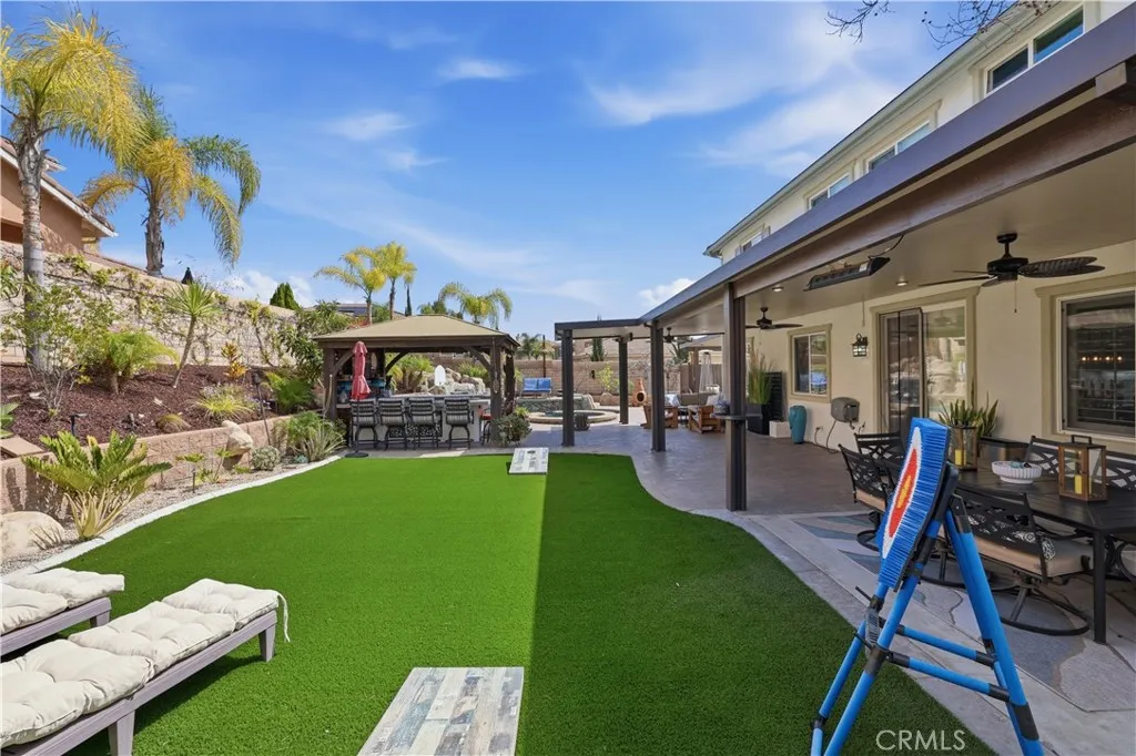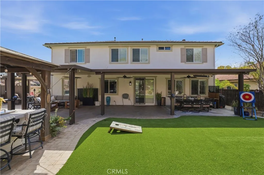 Welcome to this exceptional pool home ideally located within the Rancho California Golf Course community, with NO HOA and low taxes. Truly one of a kind among current inventory, this beautifully updated residence offers 5 bedrooms and 4 full bathrooms, including a full bedroom and bathroom on the main floor AND an attached CASITA with separate entry! The thoughtfully designed floor plan spans 3,343 square feet (3,155sf main home and 188sf casita) and features a separate living room, formal dining room, spacious family room, upstairs bonus room / office, and an updated gourmet kitchen. The elegant entry has double glass doors making the foyer light and bright upon entry. Gourmet kitchen has quartz counters, breakfast bar seating, SS appliances and pull out drawers in the cabinets. Crown molding & shutters throughout. Upstairs the expansive primary bedroom feels like a private sanctuary, complete with a fully remodeled primary bathroom with frameless glass shower and dual shower heads. Additional office nook and bonus rooms upstairs. Bonus room has barn doors and provides even more flexibility, with ample opportunity to create an extra bedroom or office space as needed. Recently painted exterior giving the home a modern, turnkey feel. The backyard is an entertainers paradise complete with pebble-tec Pool / Spa / Waterfall / Grotto, BBQ Island, alumawood patio cover, fruit trees and turf. Home has an oversized corner lot side yard used as a basketball court and has RV potential. Hook-ups are present. Casita has it's own separate entrance & HVAC unit, great for multi-gen living