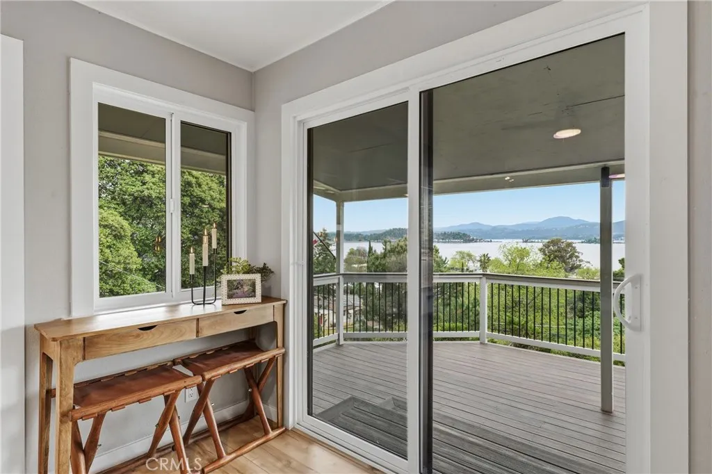 Welcome to your own peaceful slice of Lake County living. Perched on a private knoll overlooking beautiful Clear Lake, this recently renovated modern farmhouse blends rustic charm with comfortable, updated living. With 2 bedrooms, 2 bathrooms, a bonus room, and approximately 1,500 square feet of living space, this home sits on .75 of an acre, giving you plenty of room to relax, spread out, and enjoy the surrounding natural beauty. From the moment you walk inside, the expansive lake views immediately draw your attention. Large windows fill the home with natural light, creating a bright and welcoming atmosphere throughout the living areas, bedrooms, and bonus room. Its the kind of place where you can enjoy morning coffee while watching the lake or unwind in the evening as the sun sets over the water. Nearly every detail of the home has been thoughtfully updated. Recent renovations include a newer roof, updated windows, and beautiful maintenance-free decking with built-in lighting, perfect for enjoying the outdoors year-round. Inside, stylish barn doors and a calming custom color palette add character while maintaining a clean, modern farmhouse feel. The kitchen has been completely redesigned and serves as the centerpiece of the home. It features custom cabinetry, stainless steel appliances, butcher block countertops, and a classic farmhouse sink. Whether you're cooking a quiet dinner at home or hosting friends and family, the space is both functional and inviting. Both bathrooms have been tastefully remodeled with modern fixtures and elegant finishes that create a spa-like fe