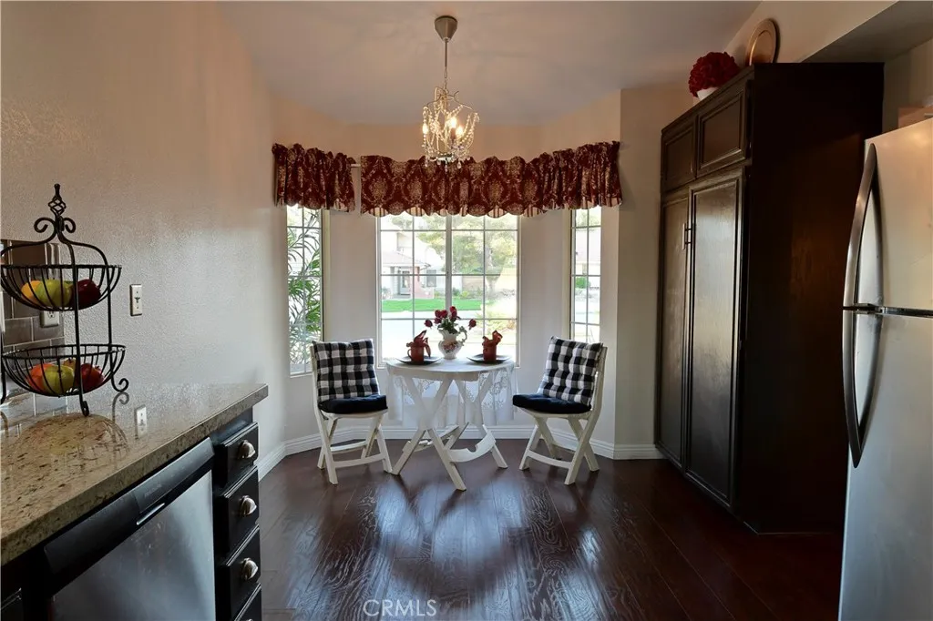 Updated Single-Story in the Heart of Rancho Vista! Nestled near the scenic foothills of West Palmdale, this beautifully maintained single-story home offers comfort, style, and convenience. Ideally located within walking distance to Rancho Vista Elementary School and Hillview Middle School, as well as nearby dining and shopping. Enjoy the highly regarded Rancho Vista Golf Course and restaurant just minutes away. Built in 1991, this home features 3 bedrooms, 2 bathrooms, and approximately 1,346 square feet of living space on a 6,949 square foot lot. The open-concept floor plan showcases impressive vaulted ceilings and an upgraded eat-in kitchen with granite countertops, subway tile backsplash, stainless steel appliances, and dark wood laminate flooring. The inviting living area includes a cozy fireplace and abundant natural light. The spacious primary suite offers bay windows with plantation shutters and French door access, a large walk-in closet, and an ensuite bathroom. Additional highlights include an indoor laundry room, custom interior and exterior paint, and custom wood baseboards. The backyard provides block wall fencing with cross fencing on the side yard, a patio cover for outdoor relaxation, and a large 8 x 12 shed with its own air conditioning unitperfect for a workshop, office, hobby space, or additional storage. The front yard features water-saving xeriscape landscaping for easy maintenance. Dont miss the opportunity to see all this lovely home has to offer and make it your own!