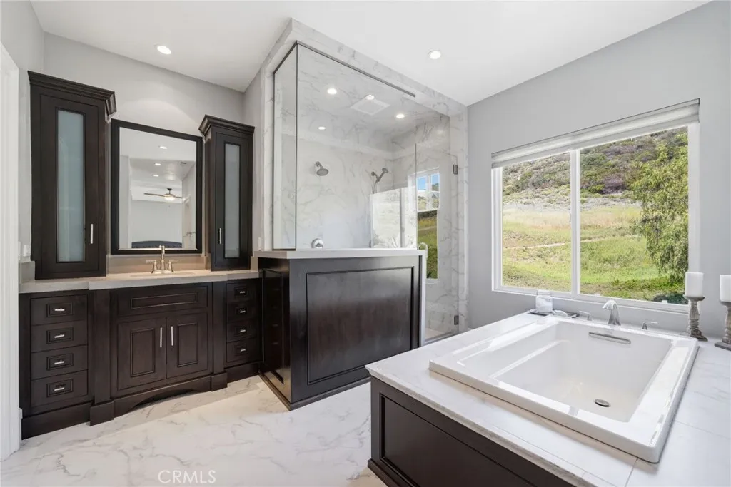 Beautiful home on a culd-de-sac at the top of the hill located in the Lyon Estates community of Robinson Ranch. Great open space with high ceilings and tons of natural light, this home offers 4 bedrooms and 2 bonus rooms that can be additional bedrooms, office or play room. Kitchen offers a walk in pantry and Butler's pantry, quartz counter tops. Master bedroom with his and hers closet with a viewing deck overlooking Cleveland National Forrest with an open space, as per seller deck was rebuilt on 2024, A/C and furnace was replaced in 2022. Backyard outdoor fire place, saltwater solar heated pool and spa make a year round entertaining outdoors for family and guests to enjoy. Home offers access to community pool, spa, park and walking distance to hiking trails. Close proximity to the Rancho Santa Margarita lake with great dining options. A home warranty is on the property w/ AHS & will be extended to the buyer, This home is located in a perfect spot! Come see it yourself and you'll know it's a great place to live and create new long lasting memories.
