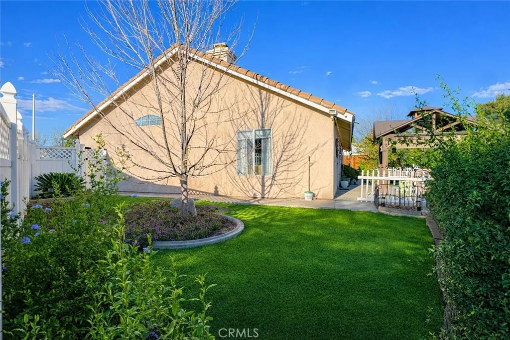 Welcome to this beautifully maintained single-story home tucked away on a quiet cul-de-sac in Calimesa! Offering inviting curb appeal, this charming single-family residence features a bright and comfortable layout with soaring ceilings, spacious living areas, and tasteful updates throughout. The living room feels open and airy, while the remodeled kitchen showcases white cabinetry, stone-style counters, stainless steel appliances, recessed lighting, and a farmhouse sink, flowing nicely into the dining area for everyday living and easy entertaining. The primary suite offers a relaxing retreat with vaulted ceilings and an upgraded bathroom featuring a large custom walk-in shower, while the 2 other bedrooms provide flexibility for family, guests, or home office use. A generously sized indoor laundry room that doubles as an office space, adds convenience and functionality. Step outside to enjoy the beautifully cared-for backyard complete with lush lawn, mature landscaping, stamped concrete, and a covered gazebo-style patio that creates a wonderful setting for outdoor dining, gatherings, or peaceful evenings at home. The side yard offers additional usable space with room for extra parking, recreational vehicles, or storage possibilities. The property also includes an attached 2-car garage and a wide driveway. Ideally located near local parks, trail and community amenities in Calimesa, with convenient access to shopping and dining at The Marketplace at Calimesa, which is anchored by Stater Bros., and easy access to Interstate 10 for commuters. Don't miss out on this opportunity!!