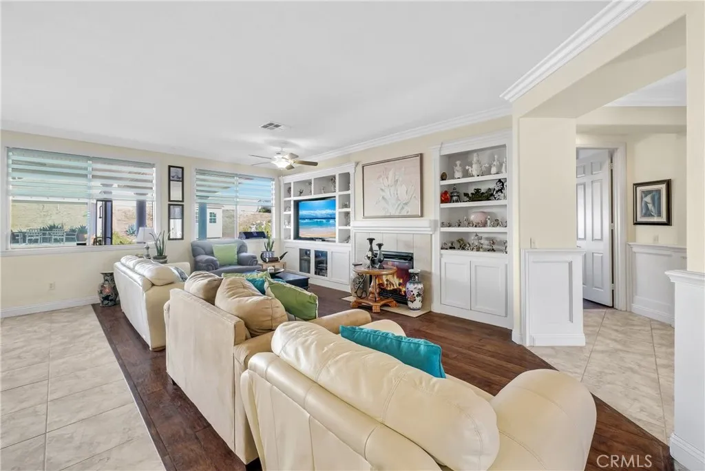 Youve found your forever home! Welcome to 19488 Eldorado. This beautiful single-story residence offers four bedrooms, including a spacious primary suite, two and a half bathrooms, and a three-car garage. Situated on a pool-sized lot, theres ample space for RV parking, boats, and all your recreational toys. Step inside through the elegant beveled glass entry door and be greeted by tiled hallways that lead you into a thoughtfully designed layout. To the right, the formal living room features warm wood flooring, plantation shutters, and custom built-in shelving. On the left, the formal dining room invites gatherings with its handcrafted chair rail detailing that extends along the walls and hallway. The cozy family room centers around a charming fireplace, creating the perfect space to relax while enjoying meals prepared in the spacious kitchen. The kitchen is well-appointed with a gas cooktop, oven, microwave, and sleek granite countertops. Throughout the home, youll find refined touches such as crown molding, baseboards, recessed lighting, and additional built-in features that elevate the overall design. Step outside and unwind under the expansive covered patio or pergola, and enjoy your morning coffee. The backyard also includes two large storage units with endless potential, perfect for a she-shed, man cave, or creative studio, while still leaving plenty of room for gardening enthusiasts. This is more than a home, its your personal oasis. Come see it for yourself and make it yours! This home awaits you.