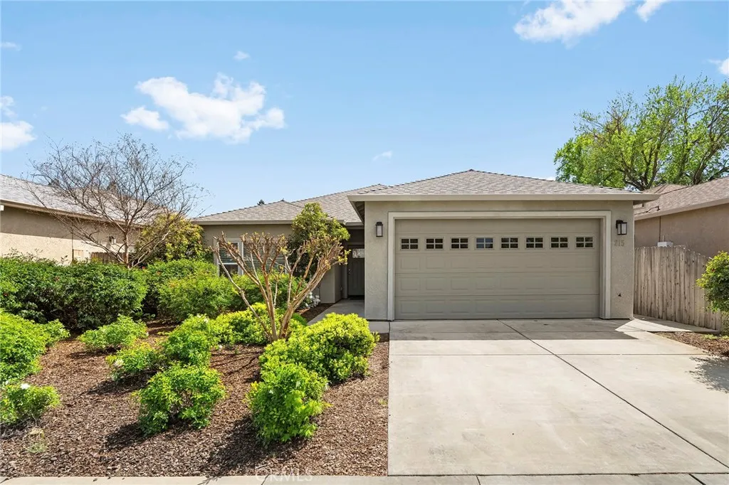 Looking for the comfort and feel of a newer build without the wait? 215 Danielson Ln. was thoughtfully designed to offer exactly that, a 3-bedroom, 2-bathroom home with 1,446 sq. ft. of comfortable living space, built in 2018 and designed for modern, easy living. Tucked away on a quiet cul-de-sac in Chico, the setting offers both privacy and convenience, with quick access to local amenities. Inside, the home opens to a bright, airy space where the living, dining, and kitchen areas connect seamlessly, creating a natural flow that feels both comfortable and inviting. Brand new quality laminate flooring runs throughout the main living areas, complementing the open layout that makes gathering and everyday living effortless. The kitchen is designed with both style and function in mind, offering granite countertops, stainless steel appliances, a pantry closet, and an abundance of cabinetry that keeps everything organized and within reach. The layout continues down the hall, where a dedicated laundry room with garage access adds everyday convenience. A secondary hallway creates a sense of separation, with two well-sized guest bedrooms and a full bathroom thoughtfully positioned together, while the primary suite is set apart for added privacy. The primary bedroom offers a spacious retreat with elevated ceilings, direct access to the backyard, and an en-suite bath featuring dual sinks, granite countertops, generous storage, and a walk-in closet. Outside, the backyard is designed for easy enjoyment with a covered concrete patio and an additional paver patio, creating multiple spaces