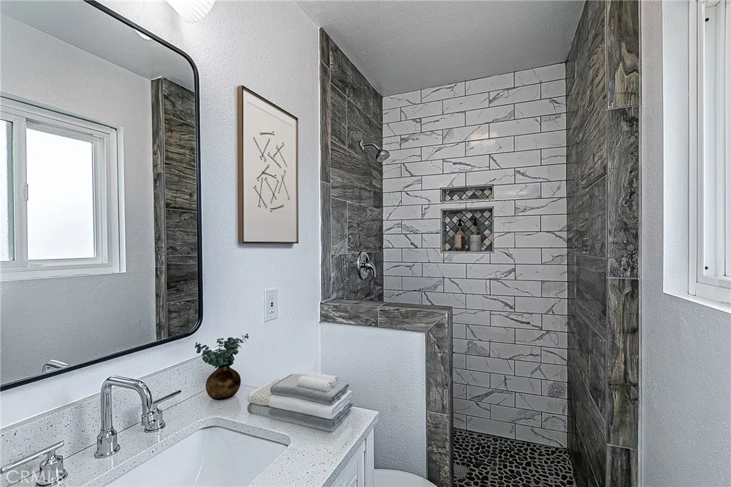 Move-in ready and beautifully renovated, this home offers the comfort and peace of mind todays buyers are looking for. Step inside to find a bright, open layout featuring custom tile flooring throughout the main living areas, including the entry, kitchen, living room, hall, and front bedroom, with new carpet in the primary & second bedrooms for added comfort. The beautifully redesigned kitchen is the heart of the home, showcasing a large island with seating for six, quartz countertops, custom backsplash, soft-close cabinetry & stainless appliances including a 5-burner stove and built-in microwave with hood ventideal for everyday living & entertaining. Both bathrooms have been reimagined with modern finishes. The primary suite features a sleek tiled walk-in shower, while the hall bath offers a full tubperfect for guests or family. Mirrored closet doors in all bedrooms enhance light & functionality. With approximately 1,493 sq ft, the home also includes a spacious family room anchored by a cozy gas-log stove. Additional upgrades like dual-pane windows, fresh exterior paint & new landscaping add to the homes turnkey appeal. Enjoy the inviting backyard with low-maintenance artificial turf & a childrens play structureperfect for relaxing or gathering. Conveniently located near schools, parks, shopping, and just minutes to Hwy 1 for Santa Barbara commuters, this home combines location, upgrades, and livability in one exceptional package.