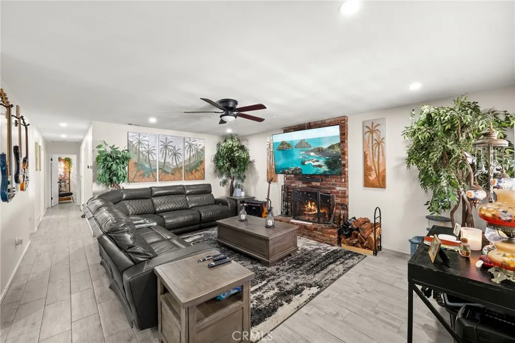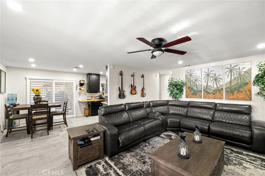 Two Residences on One Lot in the Sought-After City of Norco! Beautifully updated, this one-of-a-kind property sits on an expansive 13,068 sq. ft. lot and includes RV parking for added convenience. The front home offers 1,316 sq. ft. with 3 bedrooms, 2 bathrooms, and an attached 2-car garage. Inside, youre welcomed by a bright, open-concept layout featuring dual-pane windows, plantation shutters, tile flooring, and energy-efficient recessed LED lighting. The upgraded kitchen showcases butcher block counters, a decorative tile backsplash, modern fixtures, and updated appliances. The living area is both comfortable and inviting, highlighted by a brick-accented fireplace, ceiling fan, and large windows that lead out to a covered front patio. The primary suite features its own wall-mounted fireplace, ceiling fan, shutters, and a remodeled private bathroom complete with a custom vanity, a tiled walk-in shower with river rock detail, and glass doors. Two additional bedrooms are spacious and well-appointed with ceiling fans and shutters. The secondary bathroom has been tastefully renovated with a tiled shower/tub combination, glass enclosure, and upgraded vanity. Recent improvements include a 40-panel solar system with backup battery (leased), new roofing on both homes, and upgraded electrical service panels200-amp for the main residence and 100-amp for the rear unit. The second home offers approximately 1,013 sq. ft. with 1 bedroom and 1 bathroom, also recently refreshed with brick flooring, new paint, and a generously sized kitchen. The bathroom includes tile flooring and a tiled