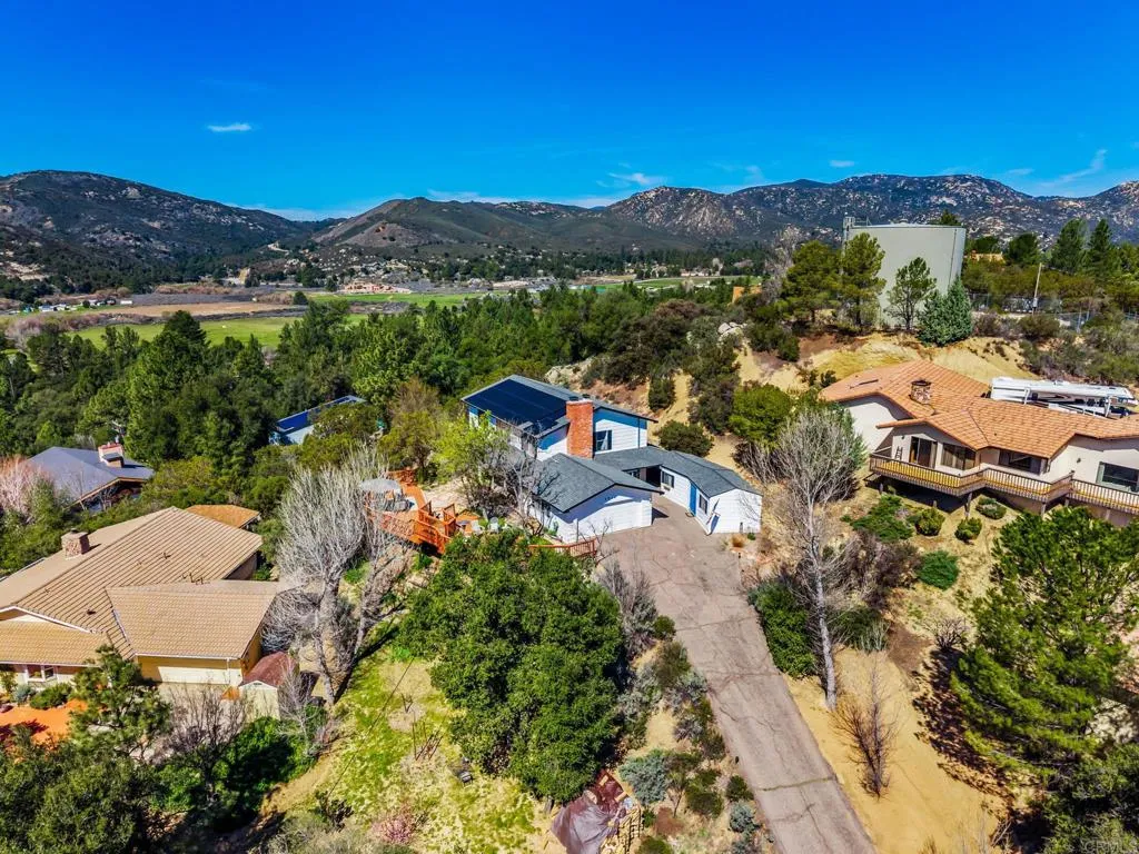 The Mountains Are Calling... Nestled in the heart of Pine Valley on a serene 0.47-acre lot, this exceptional home seamlessly blends privacy with breathtaking mountain and valley views, complemented by modern upgrades and owned solar energy. Experience the perfect harmony of comfort and outdoor living. As you approach, youre welcomed by an inviting outdoor space that features a stunning view deck, multiple patio areas, ample room for gardening, and beautifully mature landscaping. Enjoy a delightful variety of fruit trees, including peaches, apples, nectarines, plums, and pears. Step inside to discover a warm and charming interior that exudes character. The cozy family room, highlighted by a large brick fireplace, embodies a modern mountain-lodge ambiance. Perfect for entertaining, the formal dining room features French doors that open to the outdoor oasis. The well-appointed kitchen is a chefs dream, boasting a breakfast bar, abundant storage, and double ovens. On the second floor, a versatile loft area awaits, offering a bonus room ideal for a home office with a view, a workout space, or extra storagelet your imagination run wild! This home includes four spacious bedrooms, including a primary suite with its own magnificent brick fireplace. Additional features that enhance the propertys value include 31 owned solar panels with two Tesla batteries, a newer HVAC system, a whole-house fan, and a Nest thermostat. Theres also an approximately 300-350 sq ft outbuilding, perfect for storage or a workshop. Pine Valley is just minutes away from hiking and biking trails, a seasonal cr
