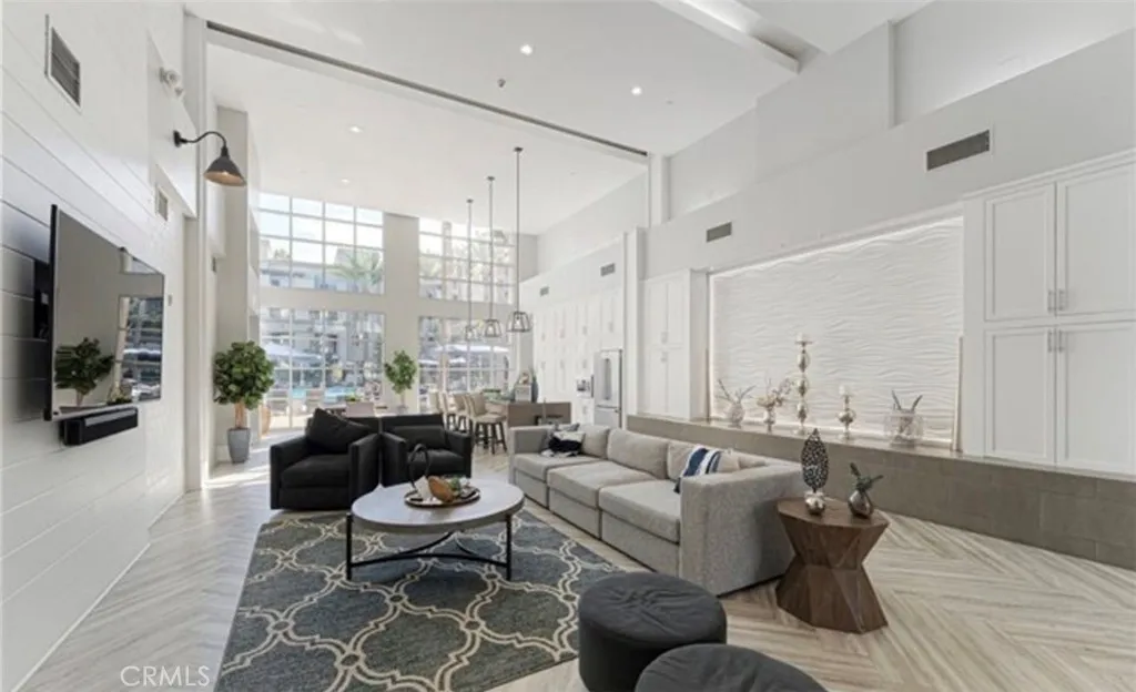 This very large 1,275 sqft TOP FLOOR PENTHOUSE end unit that faces QUIET interior street, 2 Bedrooms & a LOFT is located within the exclusive Avenue One Community right off Jamboree Road. The condo unit is a 2BR/2BA, with a 2-story high ceiling in the living room area, a LARGE LOFT almost the size of a full bedroom, a patio and lots of windows for great lighting. Bedrooms are on first level and the large loft is on the second floor. Hardwood floor in the kitchen area with granite counter tops and sleek, modern style cabinets. Also includes stainless steel kitchen appliances, a pull-down kitchen faucet, and a stacked washer dryer unit. Brand new carpeting and all the windows have blinds for privacy. Two side by side COVERED assigned parking inside GATED enclosed garage conveniently LOCATED on the SAME 4th FLOOR LEVEL as the condo. Tenant occupied, lease will expire June 20th. The Avenue One Community has resort-like amenities including a swimming pool, clubhouse, conference room, BBQ station, a workout gym, an indoor basketball and a tennis court. Property is within close proximity of John Wayne Airport, University of California Irvine, Fashion Island and Newport Beach.