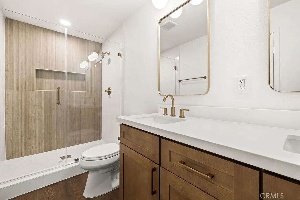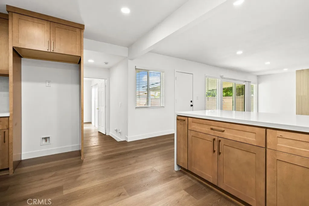Single-story living Cul-de-sac location Open-concept kitchen New roof + re-pipe Upgraded Forced Heating and Air Conditioning System Located at the end of a cul-de-sac in a quiet pocket of Anaheim, this single-story home offers approximately 1,648 sq ft on a 7,680 sq ft lot with an open-concept layout and major system upgrades. The reimagined floor plan centers around a kitchen with large countertop seating that connects directly to the living and dining areas, supporting everyday use and entertaining. Interior features include vinyl flooring throughout, updated lighting, plumbing fixtures, and modern finishes. The home includes 4 bedrooms and 3 bathrooms, including a primary suite with dual sink vanity, oversized closet, and en-suite bath. A secondary en-suite bedroom provides flexible use for guests or extended occupancy. Recent improvements include new roof, full re-pipe, tankless water heater, upgraded forced AC system, and Section 1 termite clearance. Exterior features include fresh landscaping and a large driveway. Located near local shopping, dining, parks schools and freeway access.