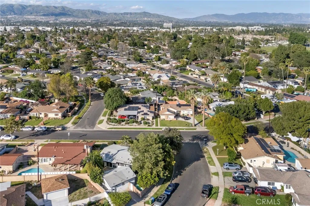 Tucked away on a quiet Winnetka street, this reimagined mid century modern offers both architectural charm and strong investment appeal, featuring a detached ADU that provides immediate rental income and long term flexibility. The main residence spans approximately 1,500 square feet with 4 bedrooms and 3 bathrooms, showcasing classic mid century elements including vaulted post and beam ceilings, clerestory windows, and expansive walls of glass that fill the home with natural light. Open concept living and dining areas flow seamlessly into a renovated kitchen with quartz countertops, stainless steel appliances, and a center island, all designed for easy everyday living and entertaining. Sliding glass doors open to a private yard surrounded by mature landscaping, creating a true indoor outdoor experience. The detached, approximately 500 square foot 1 bedroom, 1 bath ADU, completed in 2022, includes a full kitchen and washer and dryer hookups and is currently tenant occupied, delivering immediate income. Set on a spacious corner lot within a well established neighborhood, this property blends timeless design, modern updates, and built in income potential, ideal for both owner users and investors alike.