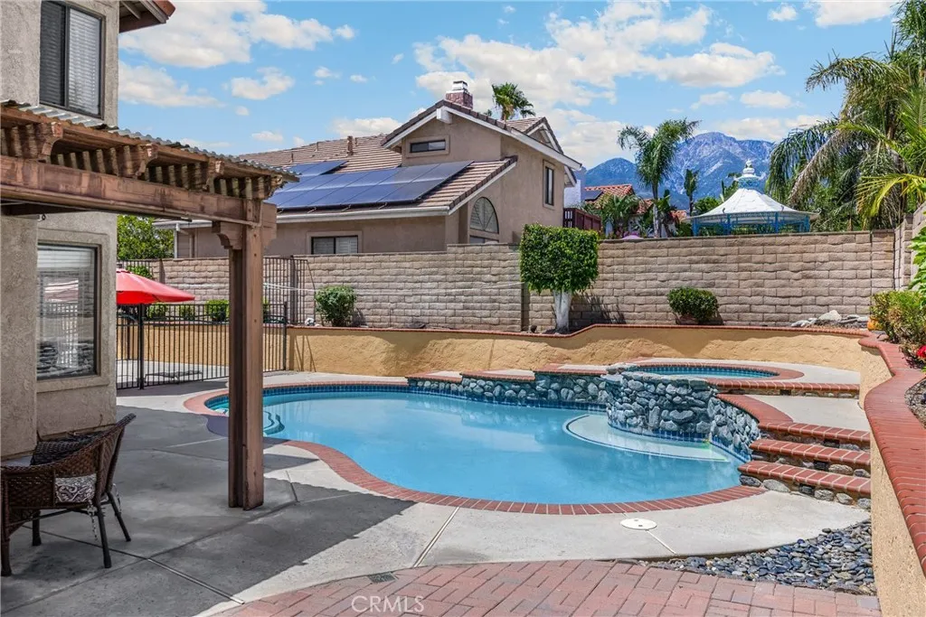 Welcome to 6785 Inyo just in time for summer, this pool home is a must-see! Located on a quiet cul-de-sac in a sought-after Rancho Cucamonga neighborhood, this home offers both comfort and convenience. As you step inside, you're greeted by a spacious formal living room with soaring vaulted ceilings and an abundance of natural light. The open layout provides flexibilityperfect for a traditional setting or a more modern, open-concept design. The kitchen features generous cabinetry, granite countertops, a tray ceiling, and a cozy breakfast nook that overlooks the backyard. It flows seamlessly into the family room, where a warm fireplace creates the perfect gathering space. Downstairs includes a bedroom, a full bathroom, and a dedicated laundry roomideal for guests or multi-generational living. Step outside into your private backyard retreat, designed for relaxation and entertaining. The centerpiece is a sparkling in-ground pool, ideal for sunny afternoons or evening swims under the stars. Additional highlights include a 3-car garage, an extended driveway, and easy access to the 210 freeway, Victoria Gardens, Central Park, hiking/biking trails, and a nearby dog park. Zoned for award-winning schools: Victoria Groves Elementary, Vineyard Junior High, and Los Osos High School.