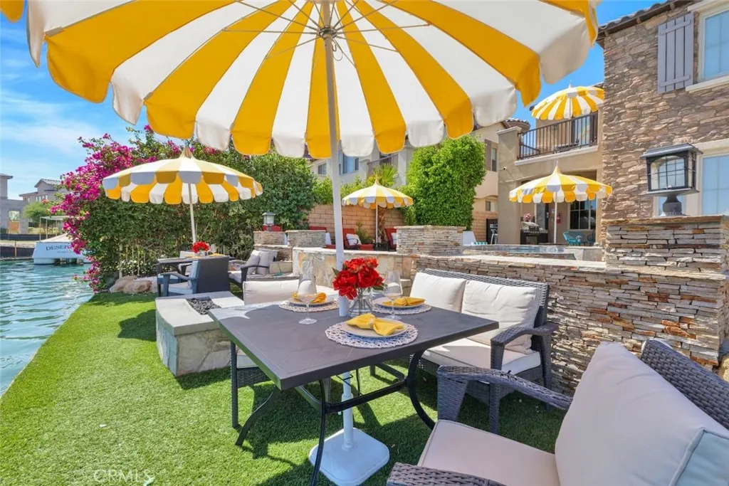 Welcome to a refined lakefront estate where luxury meets lifestyle, set within the prestigious gated community of Terra Lago. This exceptional 2-story residence offers 3 bedrooms, 3 bathrooms, and 2,157 square feet of thoughtfully designed living space, curated for both elevated everyday living and unforgettable entertaining. Recent upgrades and enhancements total nearly $60,000, including a newly installed HVAC system, upgraded pool equipment, and a custom TV feature wall, along with an optional arcade-style game room that adds another layer of entertainment. From the moment you arrive, the home reveals itself as an entertainers dream. The outdoor setting is nothing short of a private resort, where a custom saltwater pool and spa take center stage, surrounded by expansive lounge areas, outdoor misters, a fire pit, and a fully equipped built-in barbecue. A covered TV lounge and multiple dining spaces create the perfect backdrop for hosting, from elegant evening gatherings to vibrant weekend celebrations, all enhanced by sweeping lake and mountain views. Inside, the home continues to impress with a seamless blend of sophistication and comfort. The open-concept layout is complemented by a custom-built bar, creating a natural gathering space, while high-end finishes and thoughtful upgrades elevate every corner. The primary suite offers a serene escape, complete with a spa-inspired bathroom, generous walk-in closet, and a private balcony overlooking the water, an ideal setting for quiet mornings or sunset unwinding. Designed with both luxury and income potential in mind, this r