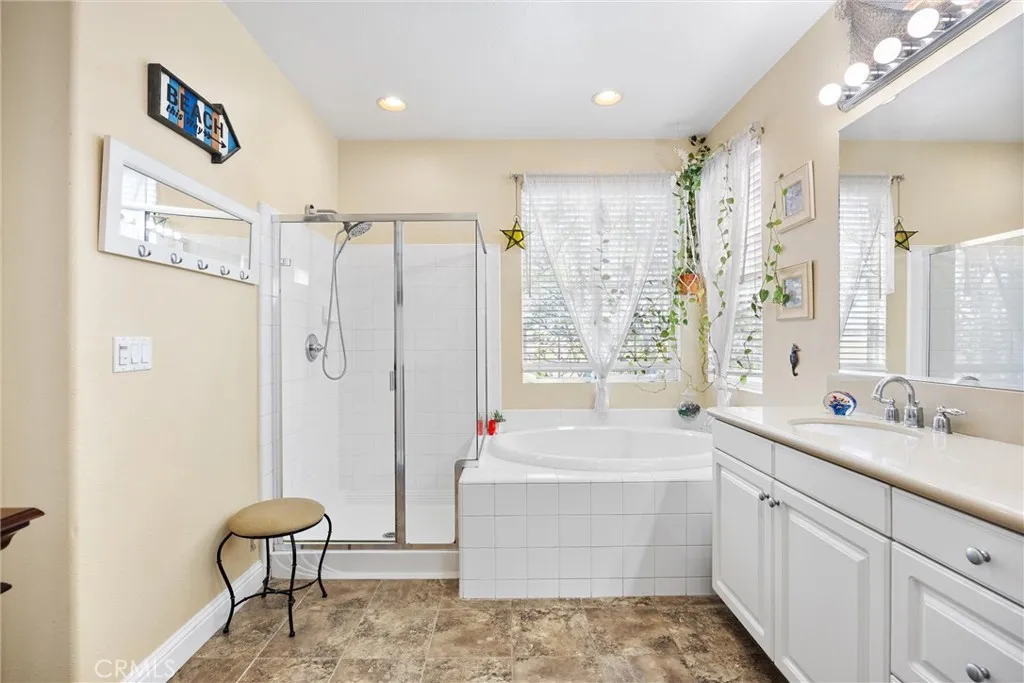 Welcome to City in the Hills, offering hillside views and access to resort-style amenities including a community pool with cabanas, BBQ area, and multiple parks. This move-in ready 4-bedroom home features an open-concept layout with a stone fireplace anchoring the living space, plus a formal dining room for hosting. The kitchen includes granite countertops, stainless steel appliances, and a large pantry. A downstairs bedroom with a nearby full bathroom offers flexibility for multigenerational living, guests, or a home office. Upstairs, the oversized primary suite is a true retreat, featuring a spa-like ensuite with dual sinks, soaking tub, separate shower, and a private balcony with sweeping hillside views. Two secondary bedrooms share an adjoining bath. Additional highlights include zoned cooling, dual covered patios, firepit area, and low-maintenance landscaping. Enjoy a peaceful setting near the Kern River, hiking trails, and nearby lake, all just minutes from downtown Bakersfield.