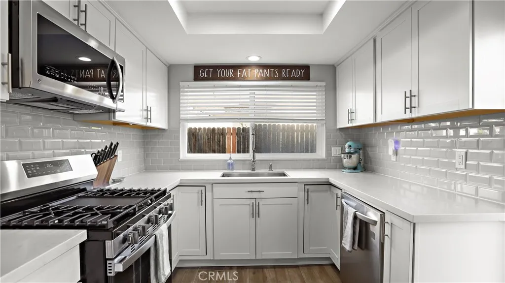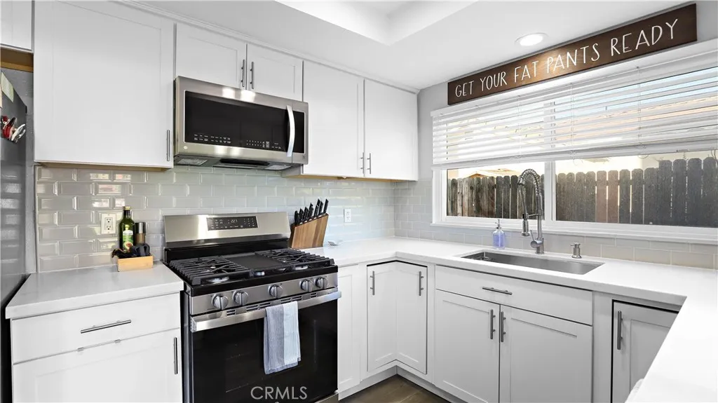 Feast your eyes on this magnificent 3 bedroom 2 bathroom home with a bonus loft area. When you enter through the front door you are welcomed by the vaulted ceilings, cozy fireplace, & large great room. As you walk throughout the home you will notice NEWER flooring (wood laminate in the high traffic areas) & carpet (in the bedrooms). The kitchen has been upgraded with soft closing drawer, white shaker cabinets, & quartz countertops leaving plenty of room for all your essential kitchen appliances. This perfect entry starter home has all bedrooms & bathrooms on the main level, with the option of a potential 4th bedroom, office space, or craft room up stairs. A rare find like no other homes, not only is this home mainly a single story, it comes with a large over a quarter acre lot space that goes straight back. Entering to the backyard you can envision your loved ones running around the yard, the possibility of a pool, or and additional dwelling unit. This home has freshly laid concrete in the front of the home, backyard, & side yard allowing plenty of room for parking or your toys. Centrally located in the heart of Riverside, you have shopping near by, schools, & freeway access. Other notable upgrades: the water heater has been replaced in 2020 & HVAC has been replaced. Don't miss your chance to own this fully renovated home today.