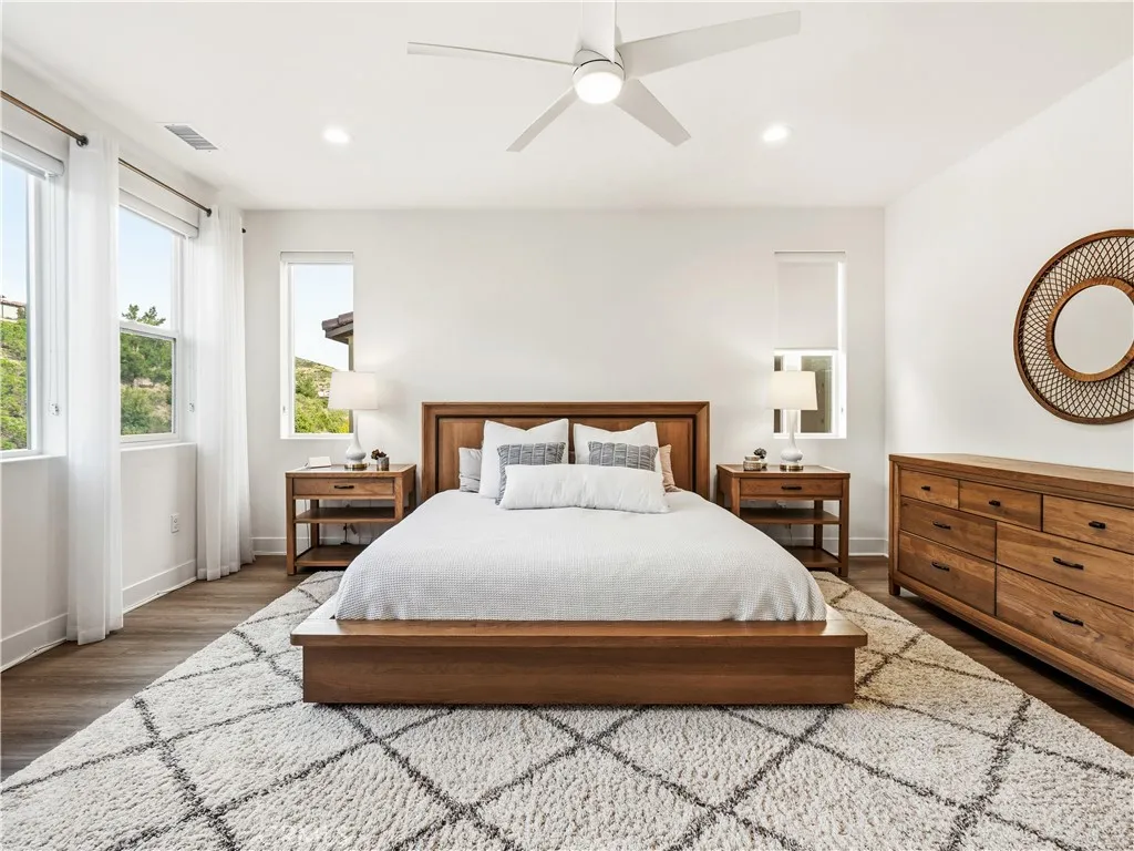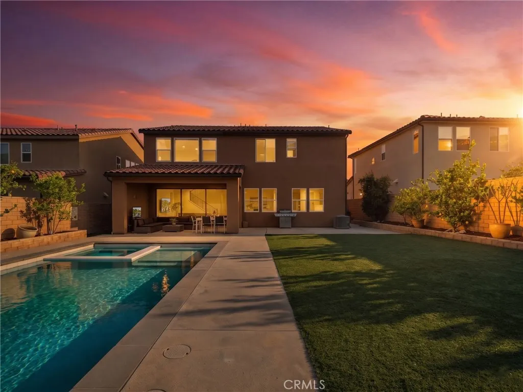Located in Santa Claritas highly sought-after Plum Canyon community, this beautifully upgraded 5-bedroom + loft, 3-bathroom home offers the perfect blend of comfort, functionality, and luxury living. Step inside to a bright and open floorplan where the living room, dining area, and kitchen seamlessly flow together, enhanced by recessed lighting and an expansive sliding glass door that fills the space with natural light and creates effortless indoor-outdoor living. The kitchen features a center island with barstool seating, granite countertops, a beautiful tile backsplash, and upgraded modern cabinet hardwareperfect for both everyday living and entertaining. A convenient downstairs bedroom and full bathroom add flexibility for guests, a home office, or multi-generational living. Upstairs, youll find 4 additional bedrooms, including a spacious primary ensuite, a versatile loft, and a dedicated laundry room with sink. The backyard is a true resort-style retreat and entertainers dreamcomplete with a sparkling pool and spa, water feature, covered patio, spacious turf area, and approximately 15 producing fruit trees offering year-round harvest and natural beauty. Mature greenery behind the yard fence provides exceptional privacy, creating a peaceful outdoor oasis. Additional highlights include luxury vinyl flooring throughout, owned solar, an attached 2-car garage, and included appliances such as the refrigerator, washer, and dryer. Enjoy close proximity to nearby trails and Plum Canyon Park, featuring a playground, baseball and basketball courts, exercise equipment, and annual c