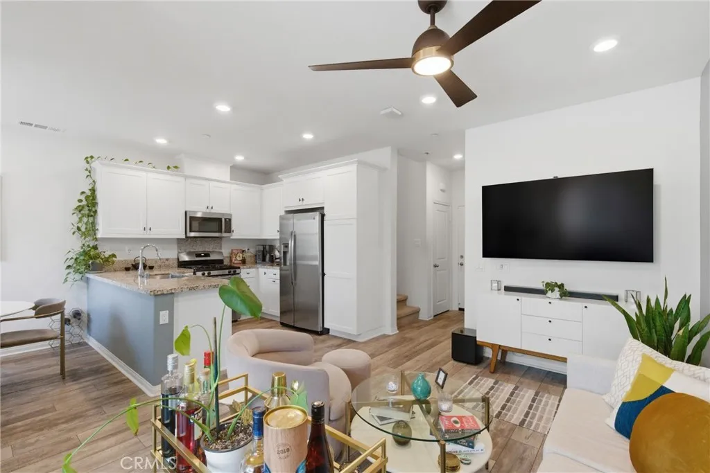 Welcome to the highly desirable Concord community in River Village, located in the heart of Santa Clarita. This beautifully maintained 2-bedroom, 2.5-bath townhome with a spacious loft offers the perfect blend of modern style, comfort, and convenience. This thoughtfully designed home features an open-concept floor plan with abundant natural light, stylish modern paint, beautiful laminate flooring throughout the main living areas, complemented by neutral carpeting in the bedrooms and loft. The kitchen flows seamlessly into the dining and living spaces, creating an ideal setting for both everyday living and entertaining, with direct access to a private front patioperfect for morning coffee or evening relaxation. Upstairs, youll find a versatile loft ideal for a home office, media room, or flex space, along with a dedicated laundry room. The primary suite offers a peaceful, unobstructed view of the surrounding foothills, with the abundant ensuite offers a large walk-in shower and double sinks and walk-in closet. Additional highlights include a well-maintained direct-access 2-car garage with epoxy flooring, energy-efficient features such as solar and a tankless water heater, and excellent proximity to guest parking. Residents of Concord enjoy access to resort-style amenities, scenic paseos, and nearby parks, all within minutes of shopping, dining, coffee shops, and everyday essentials. Ideally situated near Central Park and an extensive network of hiking and biking trails, this home offers an exceptional lifestyle! This is a rare opportunity to own a turnkey home in a prime loc