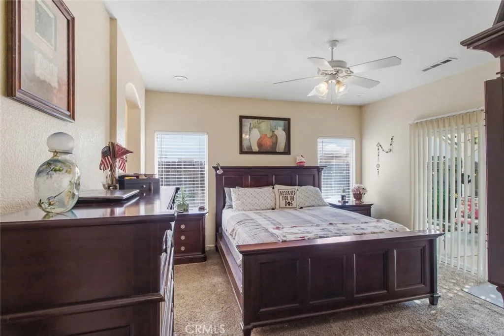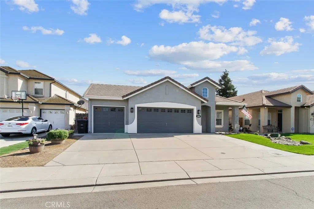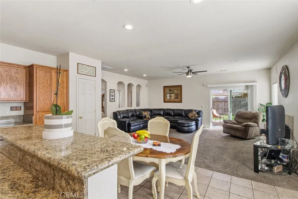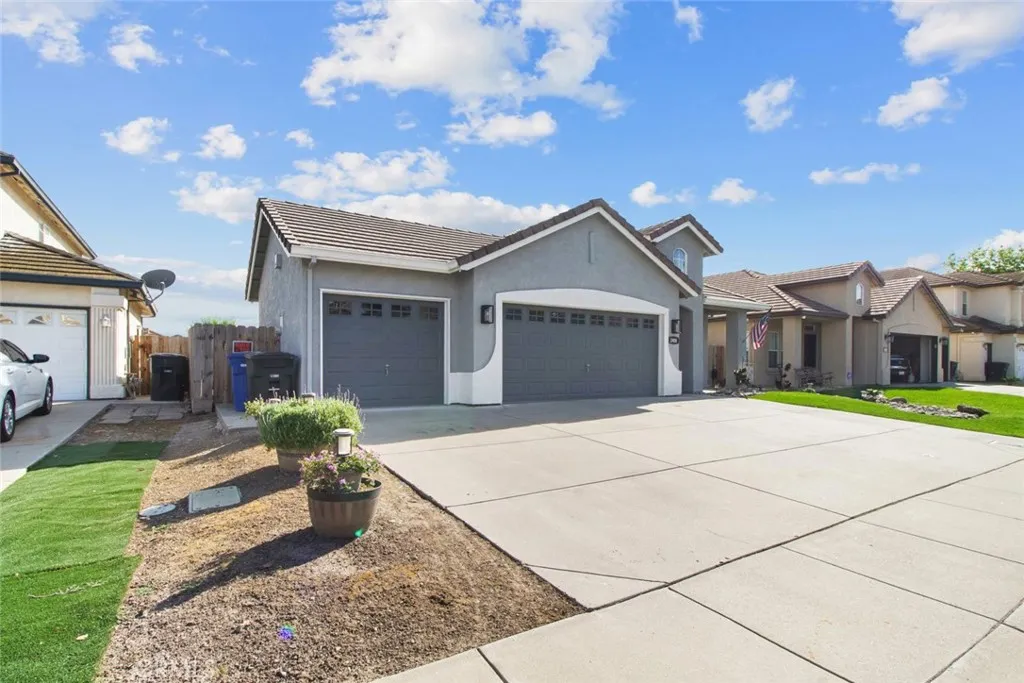 A home that feels warm the moment you arrive, where natural light dances through each room, and every space is designed for connection, comfort, and easy living. Tucked at the end of a quiet cul-de-sac in a welcoming modern suburban neighborhood, this beautifully maintained single-story residence offers a lifestyle that feels both relaxed and refined. From the moment you arrive, you'll appreciate the clean, low-maintenance front yard and inviting curb appeal, highlighted by a timeless Modern Mediterranean design and a spacious three-car garage. Step inside to a light-filled entry with tile flooring, vaulted ceilings, and graceful arched entryways that set the tone for the rest of the home. Just off the entry, a private office with double doors and large windows creates the ideal space for working from home or pursuing your passions. The heart of the home opens into a bright and airy kitchen and dining area, featuring granite countertops, a center island, stainless steel appliances, and abundant cabinetry. Wide windows and a sliding glass door fill the space with natural light, while the open layout flows seamlessly into the spacious living room. Here, you'll find a cozy fireplace, ceiling fan, and direct backyard access - perfect for both relaxing evenings and entertaining guests. The primary suite offers a peaceful retreat with dual ceiling fans, abundant natural light, private outdoor access, and a well-appointed ensuite featuring double sinks, a walk-in closet, and a separate toilet room. Two additional bedrooms provide comfortable accommodations with thoughtful features