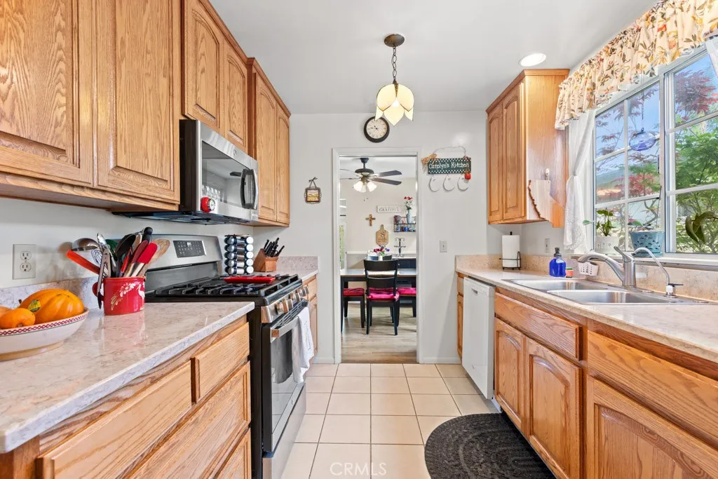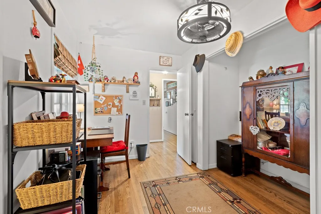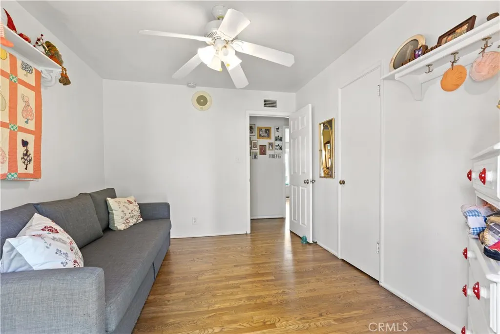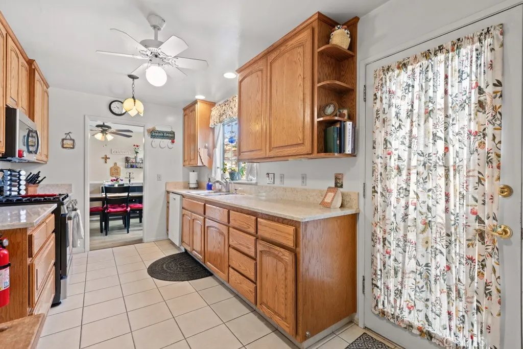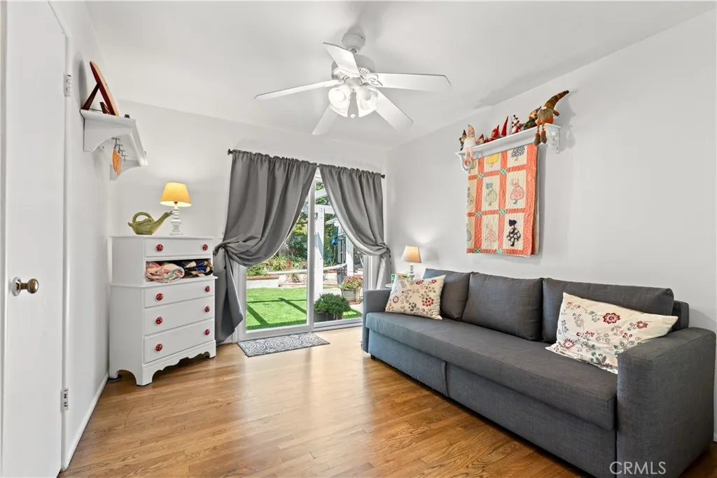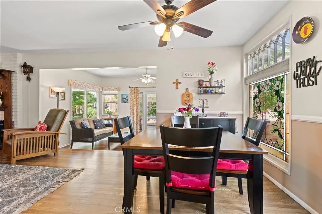 Welcome to this turnkey single-story home offering 3 bedrooms plus a dedicated office, easily convertible to a 4th bedroom. Thoughtfully updated and full of charm, this home features both a spacious living room and separate den, providing flexibility for everyday living and entertaining. The kitchen showcases stunning oak cabinetry paired with quartz countertops, glass-front display cabinets, and a dedicated coffee station area, perfect for both function and style. The beautifully remodeled bathrooms include one fully updated just a year ago. Major system upgrades offer peace of mind, including a new HVAC system (2022), water heater (1 year old), and a sewer line that was lined approximately five years ago. Hardwood flooring flows throughout the home, complemented by textured ceilings and ceiling fans in most rooms. Unique architectural details include stained glass accents in the dining area, a charming bay window in one bedroom, and French doors in the den that enhance natural light and indoor-outdoor flow. Dual-pane windows are installed throughout, along with a sliding glass door in one bedroom providing direct backyard access. Step outside to a truly special setting, an enchanting English garden featuring rare and beautiful flowers imported from Germany. This quaint and inviting backyard offers a peaceful retreat ideal for relaxing or entertaining.Move-in ready and filled with character, this home is a rare find.