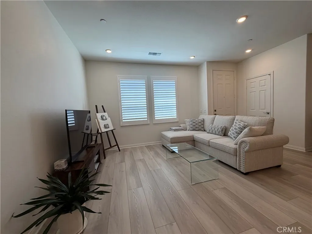 Welcome to this beautifully designed near-new 2024-built townhouse in the highly desirable Moonstone communityoffering modern, stylish living, exceptional natural light, and a rare sense of space and privacy that truly sets it apart. This almost brand-new home features 1,455 sq ft of thoughtfully planned living space with 3 bedrooms and 2.5 bathrooms, designed for comfort, functionality, and everyday convenience. Home includes a leased solar system, offering improved energy efficiency and environmentally friendly living benefits. The main level showcases a bright, open-concept layout filled with abundant natural light from additional side windows, creating an inviting and spacious atmosphere. The kitchen is appointed with white shaker cabinetry, quartz countertops, a center island with stainless steel sink, and stainless-steel appliances including a gas range, vented microwave, and dishwasheroffering a clean, modern design perfect for both daily living and entertaining. Upstairs, the primary suite provides a comfortable retreat with a walk-in closet and a well-designed bathroom featuring dual vanities and a walk-in shower. Two additional bedrooms, a full bathroom, and an upstairs laundry room complete the second level. Additional highlights include a private driveway, charming front patio, and brand-new window coverings, contributing to a fresh and move-in ready presentation. A standout feature of this home is the exceptionally wide spacing between front and rear buildings, offering an open, airy feel comparable to a single-family residence and significantly enhancing priva