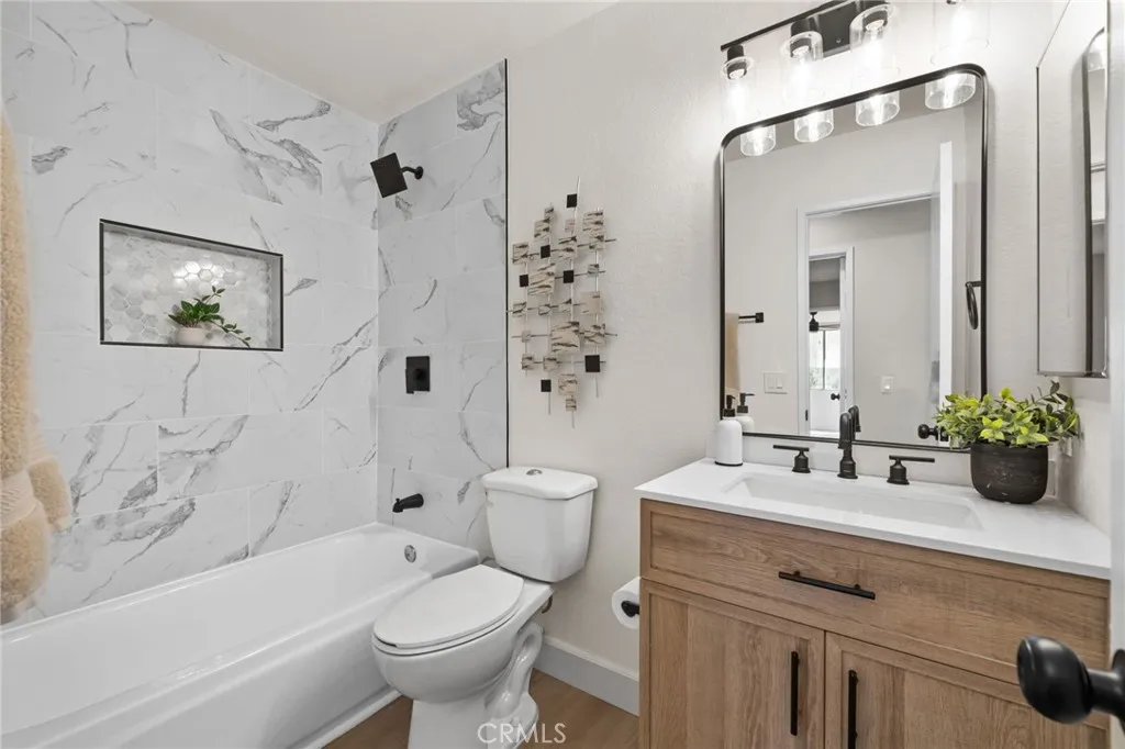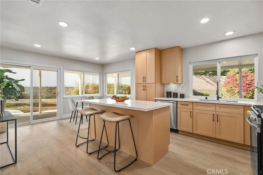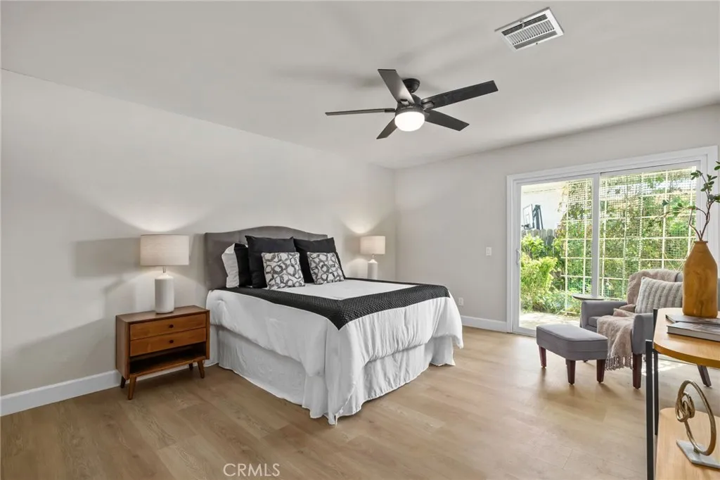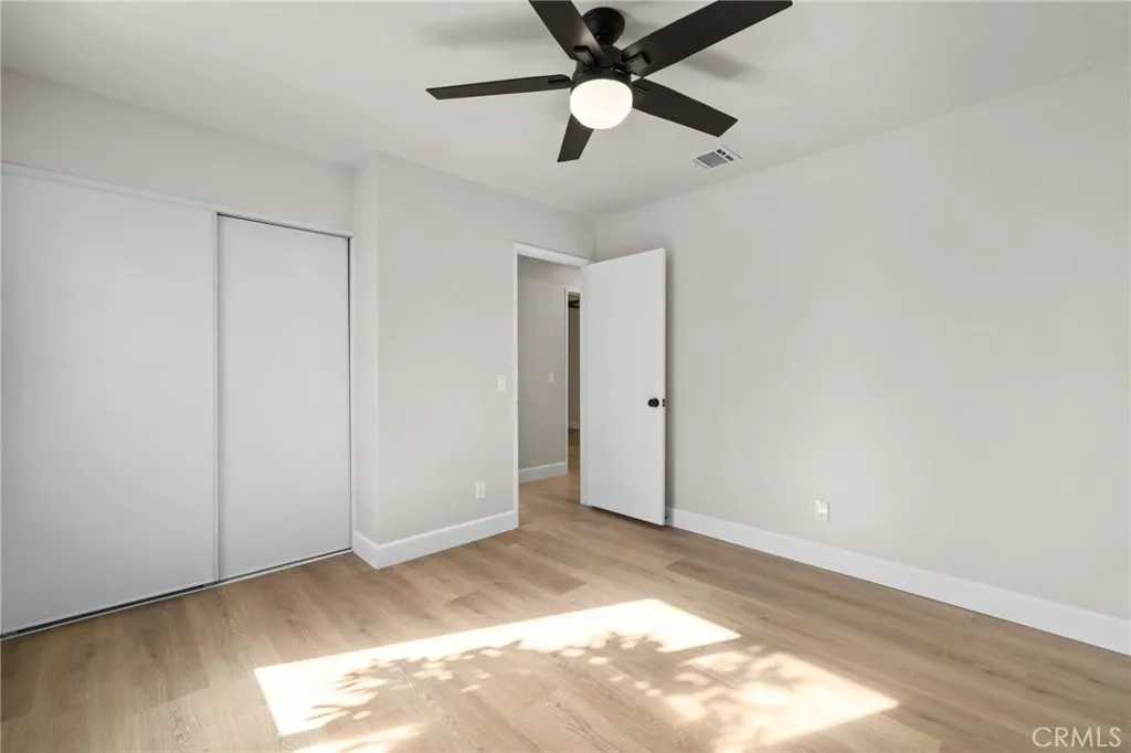 COMPLETELY REMODELED SINGLE-STORY CUL-DE-SAC HOME WITH 27 PAID OFF SOLAR PANELS - This single-story residence features 4 bedrooms and 2 bathrooms on a large pie-shaped lot at the end of a cul-de-sac with mature landscaping. The home includes 27 paid-off solar panels, a newer AC and furnace, and a whole-house fan. The open floor plan is finished with New luxury vinyl plank flooring, New baseboards, New recessed lights, and New interior and exterior paint. The kitchen features New wood shaker soft-close cabinets and quartz countertops. Both bathrooms include New vanities and New tile. All rooms have New ceiling fans and dual-pane windows. The oversized primary suite includes a walk-in closet and a private patio. The layout includes a sunroom and a large wrap-around patio, with one bedroom opening directly to the sunroom, perfect for a home office or playroom. Conveniently located near the 60 and 71 freeways, Ontario Airport, and walking distance to shopping and schools. Come, See This Home Before It's TOO Late!