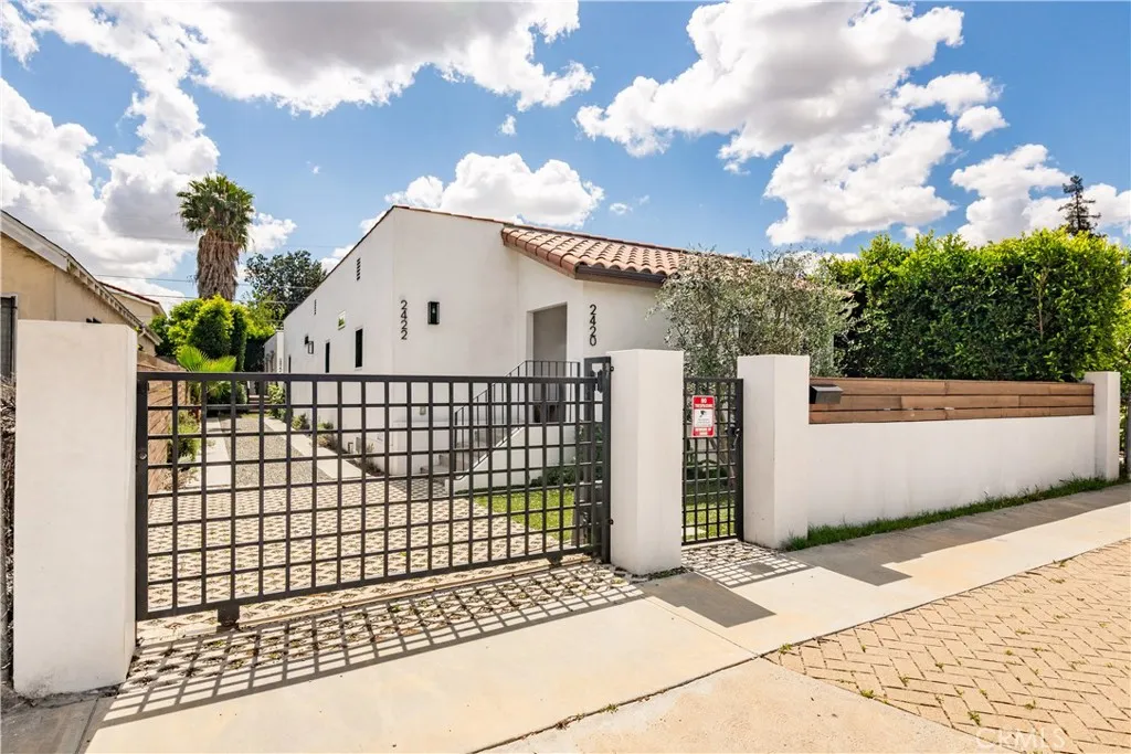 Nestled in the highly desirable Frogtown neighborhood of Los Angeles, this exceptional property features a fully REMODELED Spanish/Modern Organic main residence and a detached guest house (ADU), ideally situated on a quiet cul-de-sac just steps from the LA River walkway. This unique offering seamlessly blends timeless character with modern design and income potential. The main residence offers 3 bedrooms and 2.5 bathrooms, highlighted by a bright, open-concept floor plan designed for effortless living and entertaining. High-end finishes include custom oak cabinetry, hardwood flooring, Caesarstone countertops, and designer tile throughout. The primary suite features a spacious walk-in closet, and the home is complete with an interior laundry closet with washer and dryer. Seamless indoor-outdoor flow leads to a private outdoor seating and dining area with a built-in BBQperfect for enjoying Southern California living. The property also features a gated entrance with secure on-site parking and a Tesla charger, providing both convenience and modern functionality. The detached ADU offers a versatile open layout with living, dining, and kitchen areas, fully equipped with a dishwasher, range, microwave, and refrigerator. Additional highlights include a stackable washer and dryer, ample storage, a bright bedroom with French doors opening to a private patio, and a beautifully tiled bathroom. Ideal for guests, a home office, studio, or rental income. Located in one of Los Angeles most vibrant and sought-after neighborhoods, the property offers convenient access to the LA River path, l